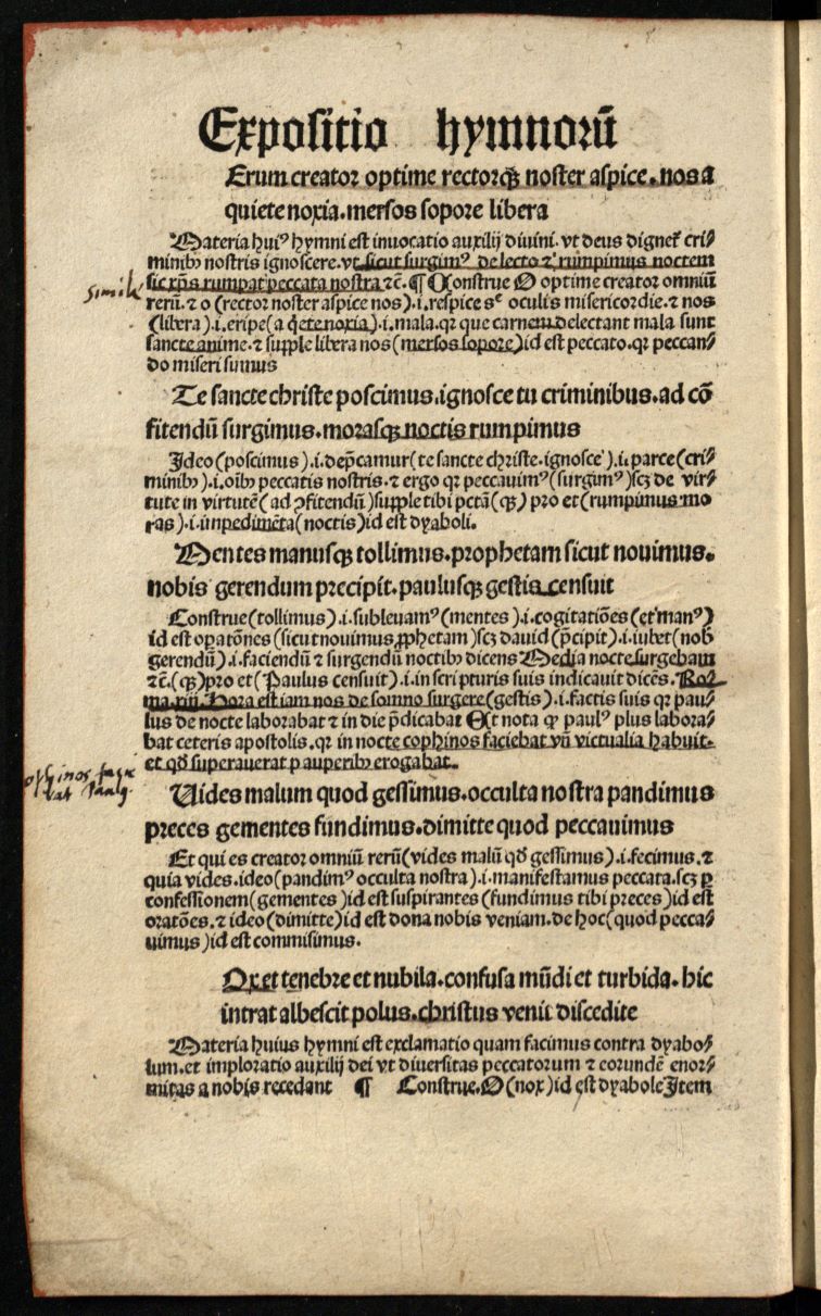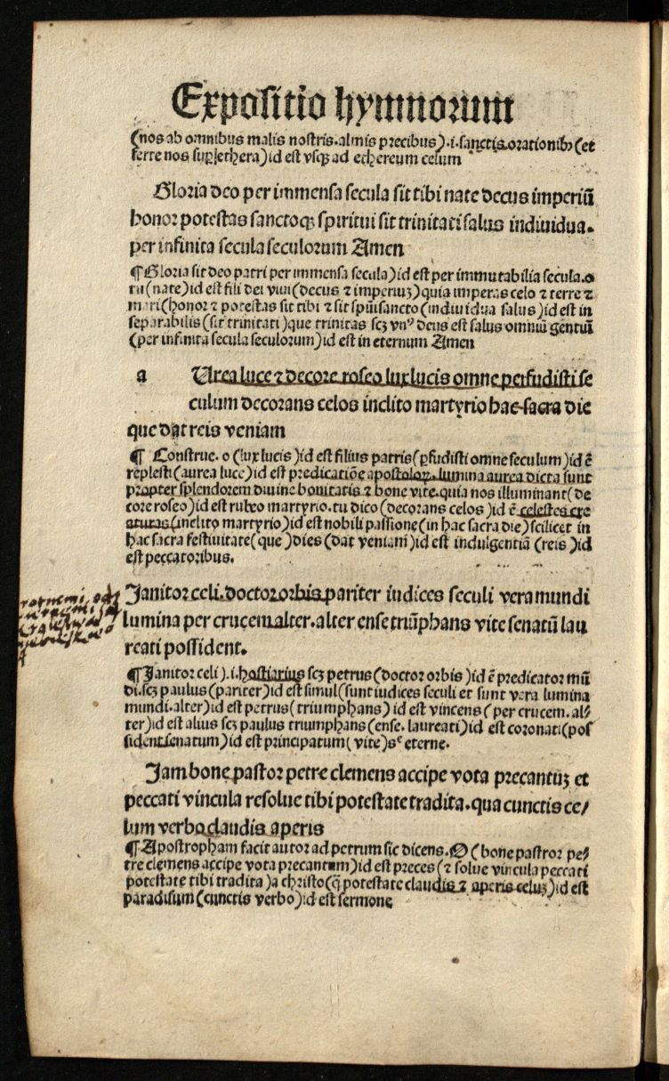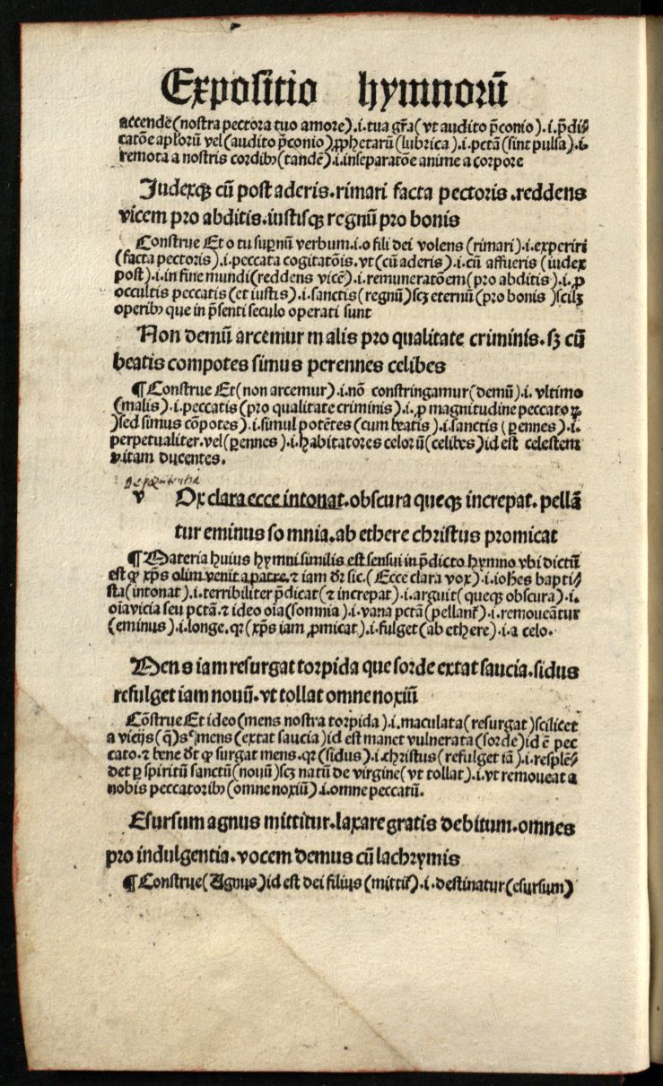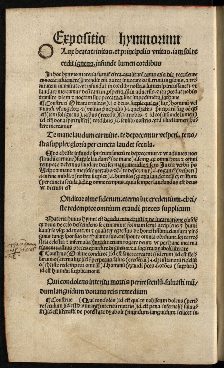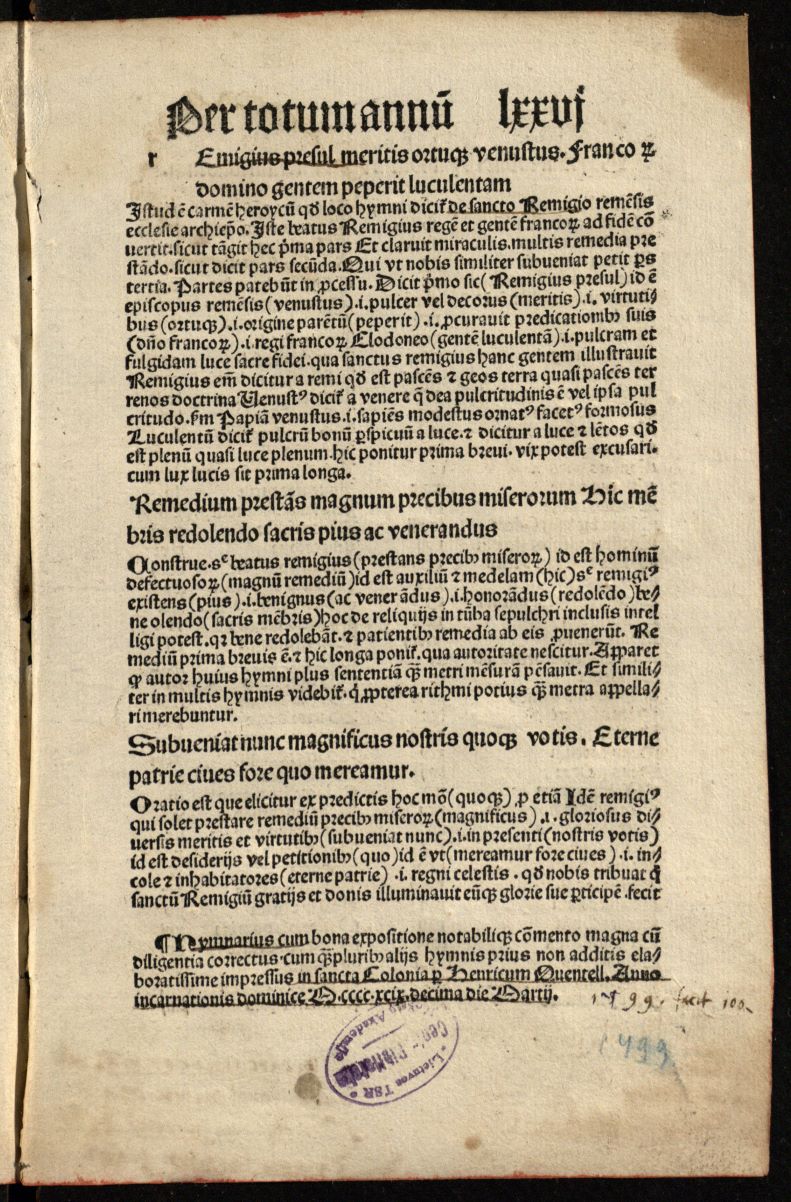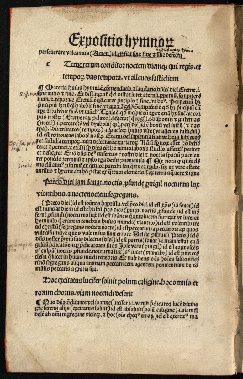 Expositio hymnorum cum familiari commento, Colonia [i.e. Köln] : p[er] Henricum Quentell, M.cccc.xcix. decima die Martii [1499 03 10], 1 nenumeruotas lapas, 76 lapai, 1 nenumeruotas lapas ; 4° (19 cm).