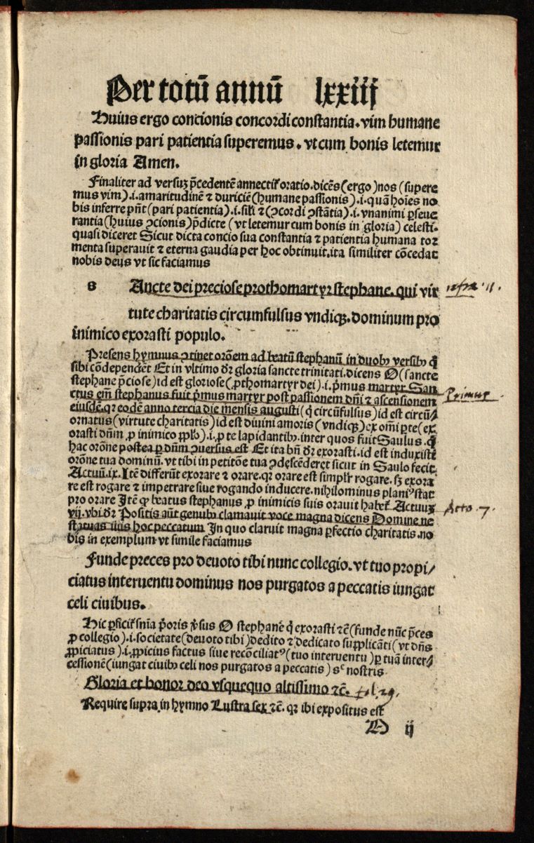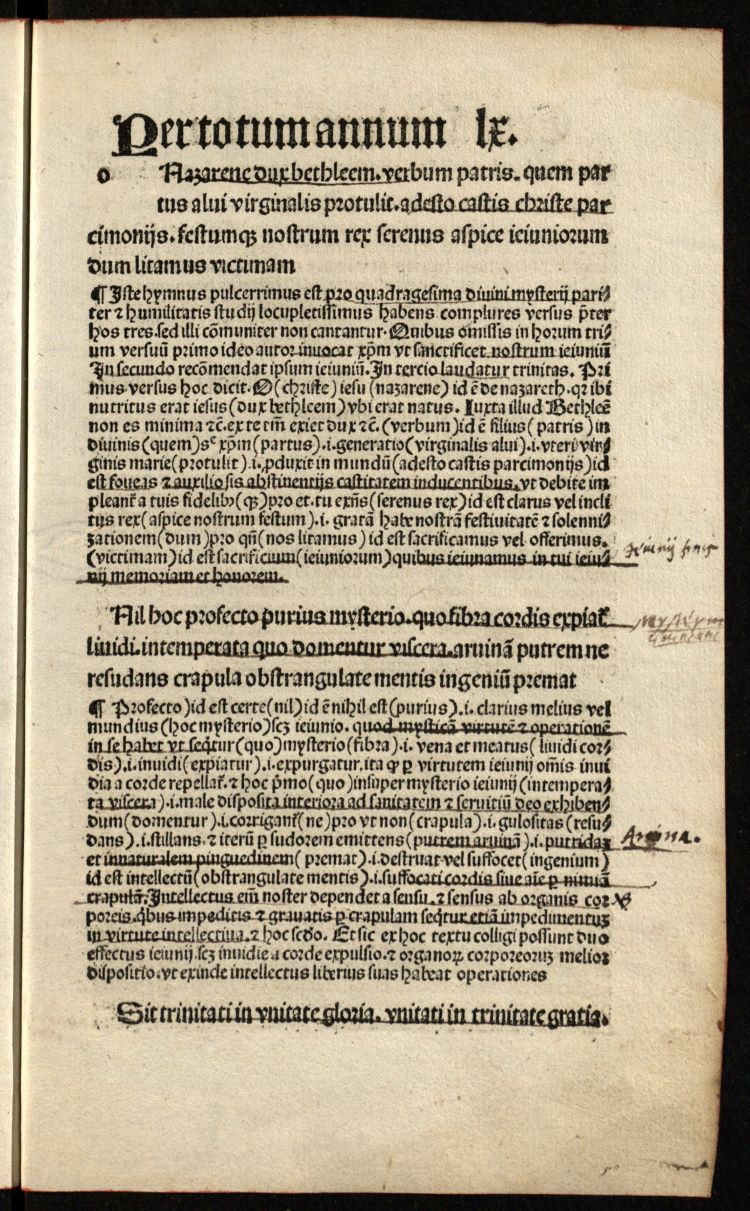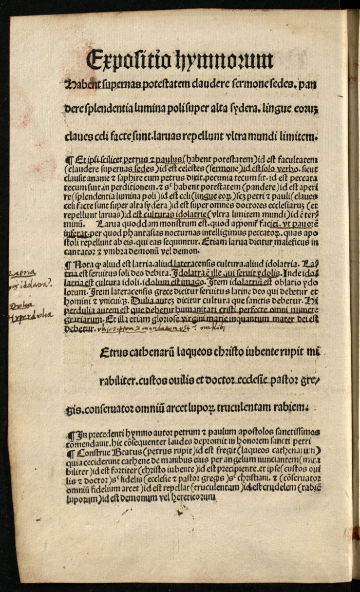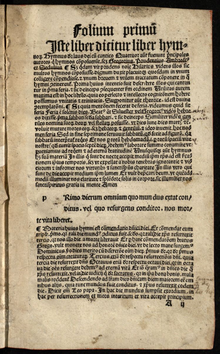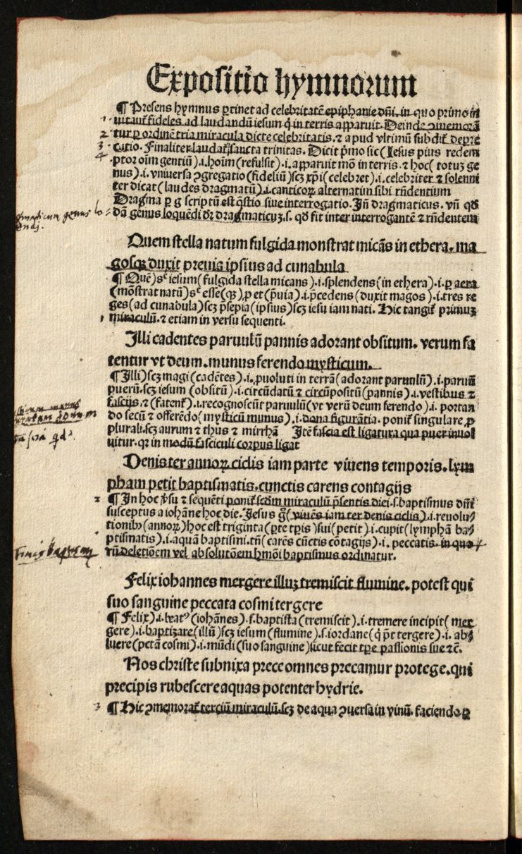 Expositio hymnorum cum familiari commento, Colonia [i.e. Köln] : p[er] Henricum Quentell, M.cccc.xcix. decima die Martii [1499 03 10], 1 nenumeruotas lapas, 76 lapai, 1 nenumeruotas lapas ; 4° (19 cm).
