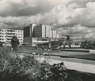 Naujosios miestų statybos didžiuosiuose Lietuvos miestuose : [fotografijų albumėlis] / [fot.. A. Aleksandravičius (?)]