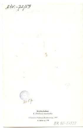 Šiaulių rajonas : Kryžių kalnas / K. Driskiaus nuotrauka, Vilnus : Lietuvos Vyskupų Konferencija, 1997, 1 sulankstomas atvirukas : spalvotas ; 15 x 10 cm.