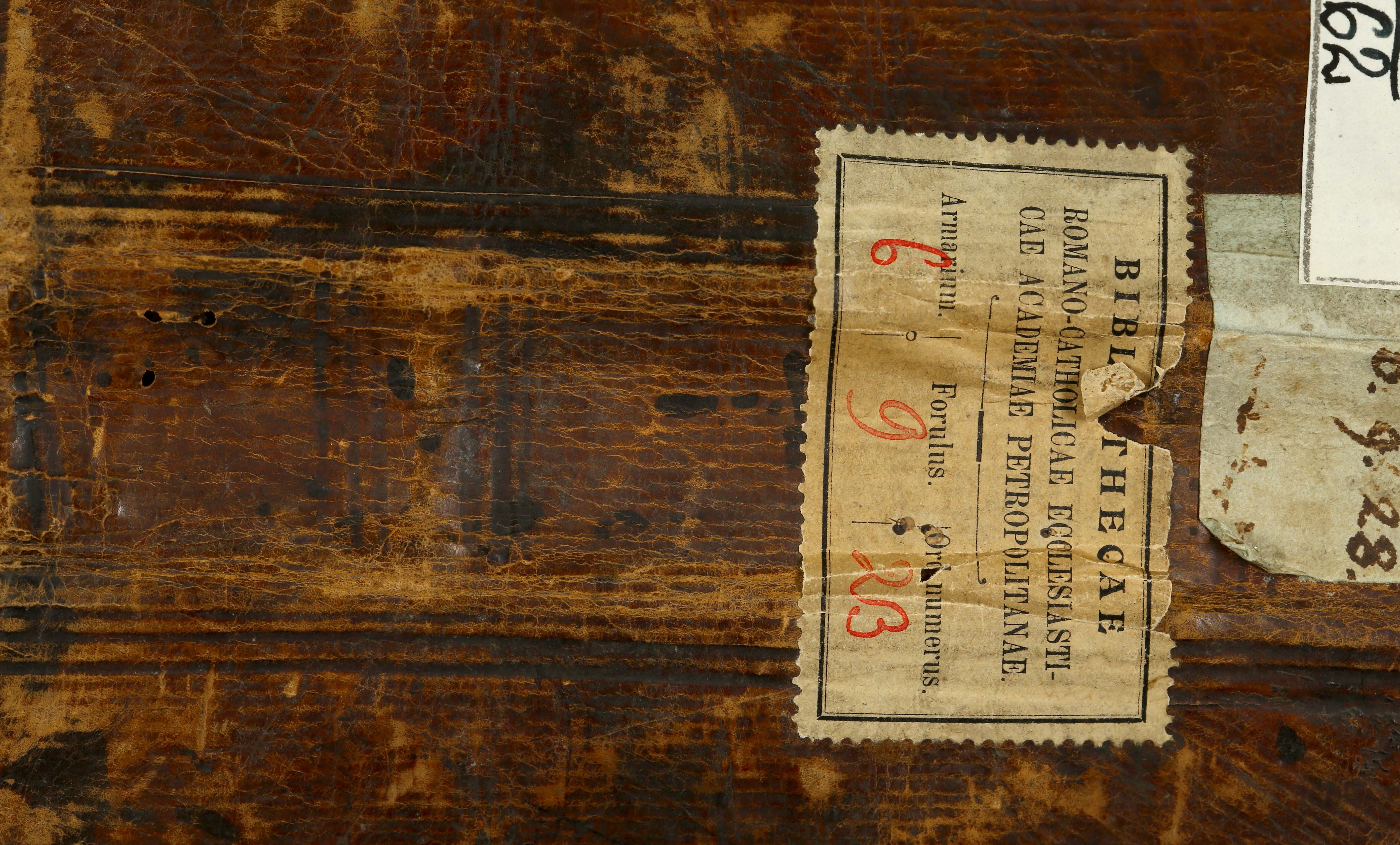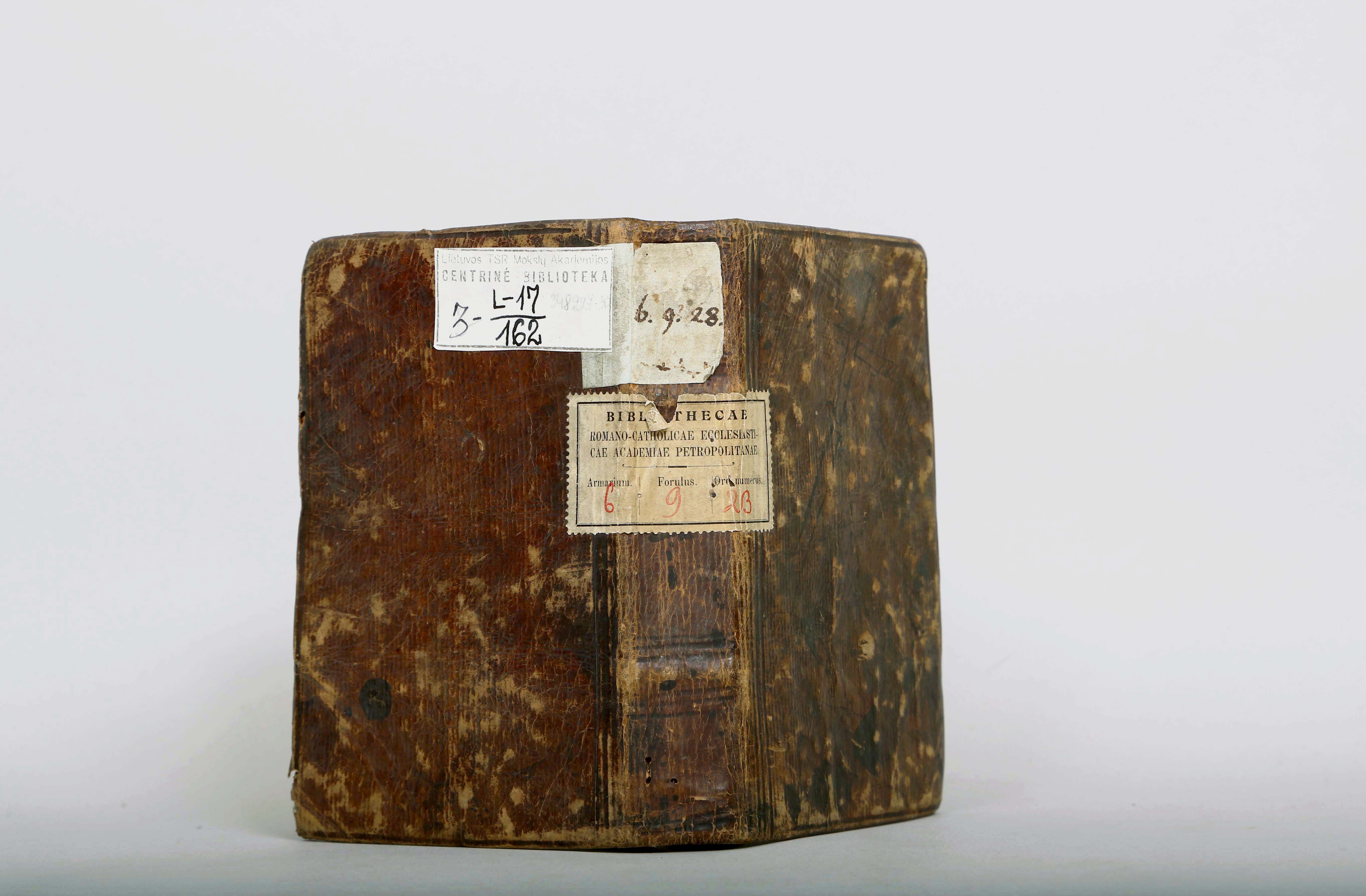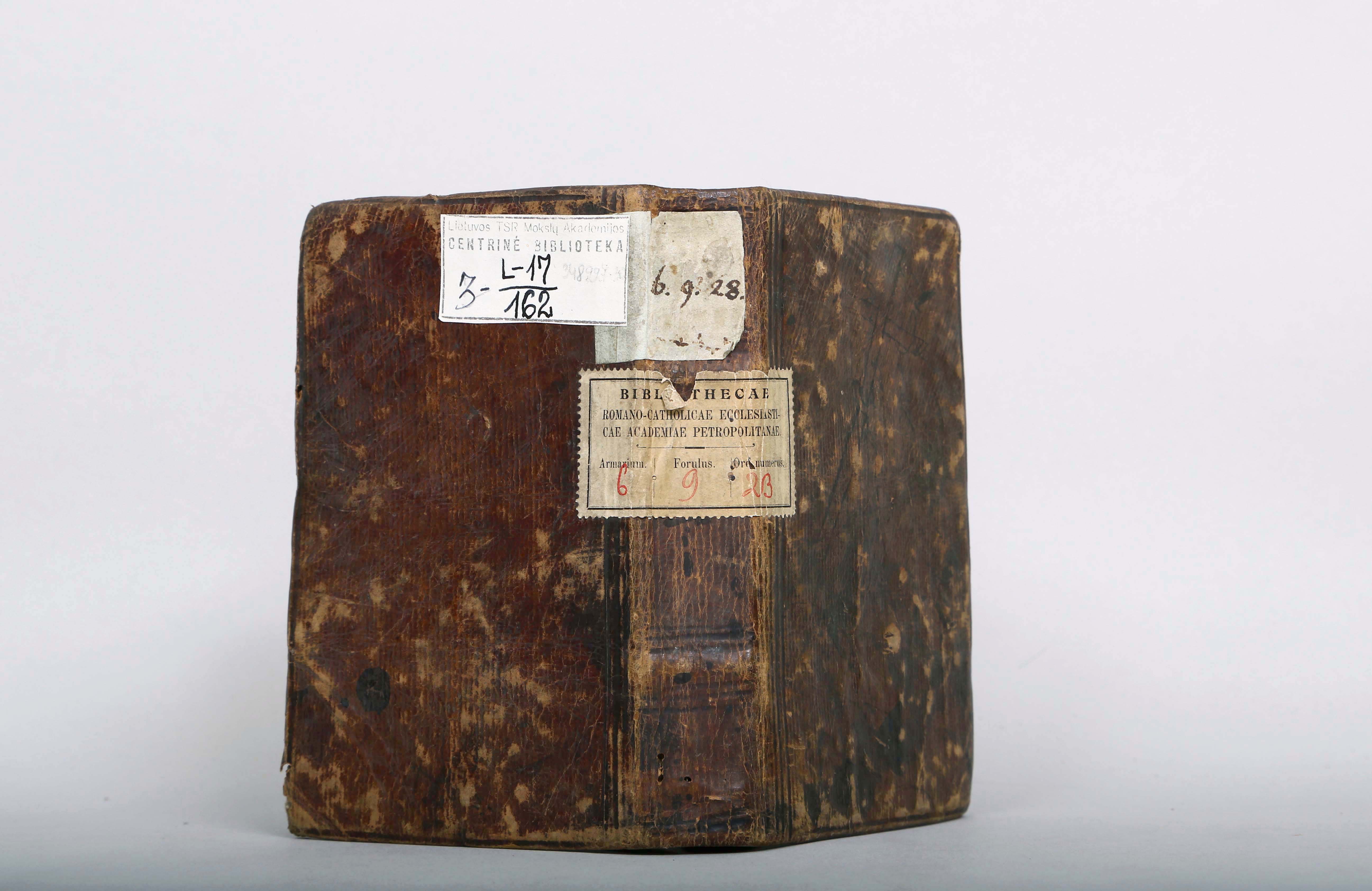 Nuosavybės ženklas: Domus Professae Viln[ensis] SJ. [įrašas]; Bibliothecae Romano-catholicae ecclesiasticae Academiae Petropolitanae [lipdė].