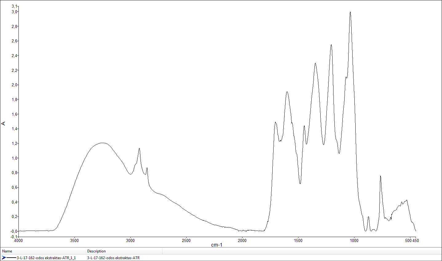 Mikrocheminiai ir instrumentiniai tyrimai: pH - 5,1; Geležies chlorido testas - teigiamas; Vanilino testas - neigiamas; Nitritinės rūgšties testas - neigiamas; Rodanino testas - teigiamas; Taninų klasė - Hidrolizuojami taninai; ATR-FTIR spektroskopija - Galo taninai.