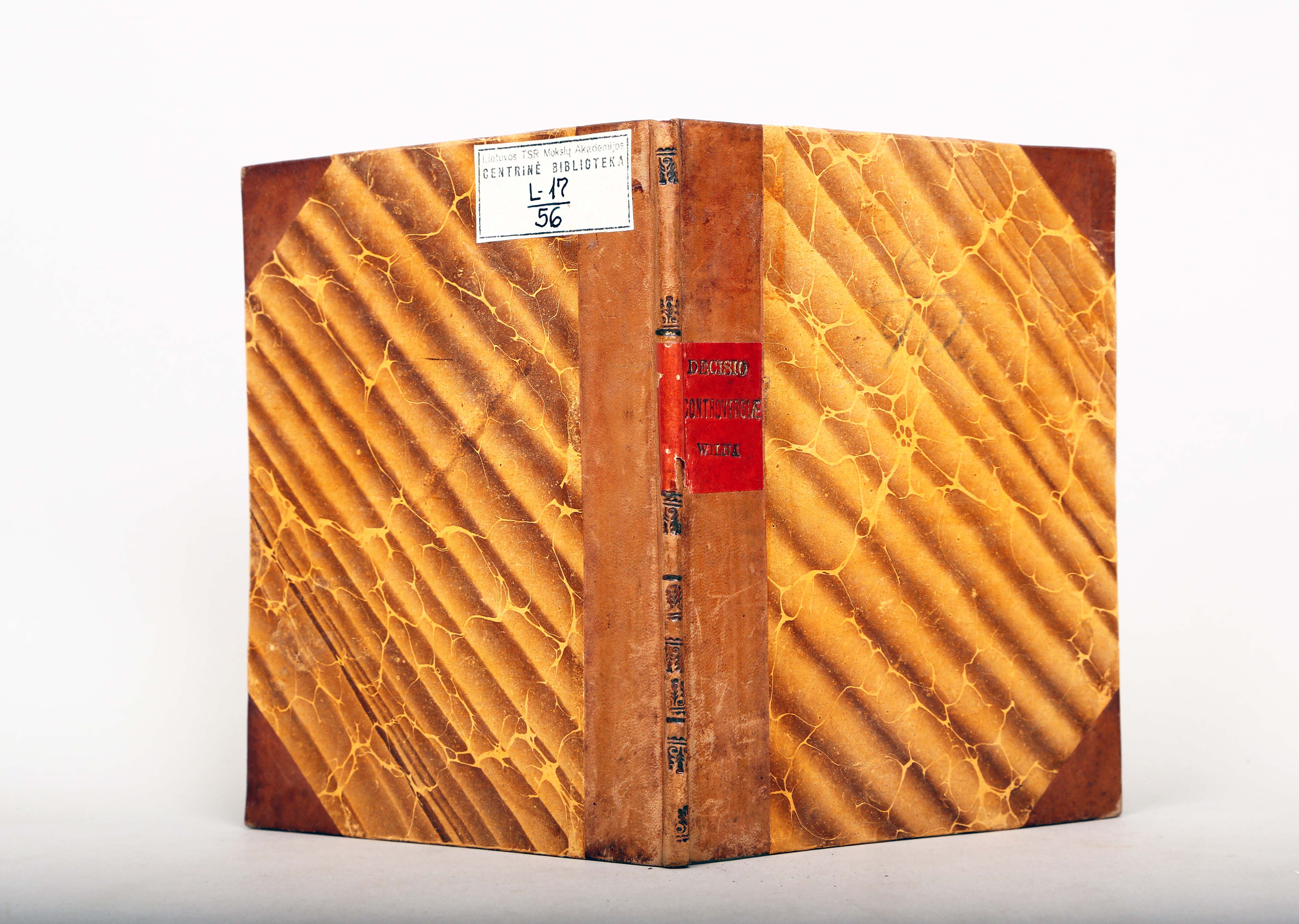 Įrišas knygos [Konstantynowicz, Józef. Decisio controversiae iuris canonici, sub felicissimis auspiciis [...]. Vilnae : typis Acad. Soc. Iesu, [1647].]