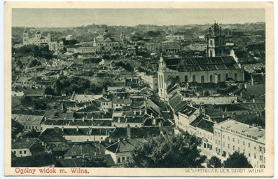 Ogólny widok m. Wilna : Gesamtblick der Stadt Wilna, [Wilno] : Verlag M. & G., [1914-1918], 1 atvirukas : tonuotas ; 9 x 14 cm.