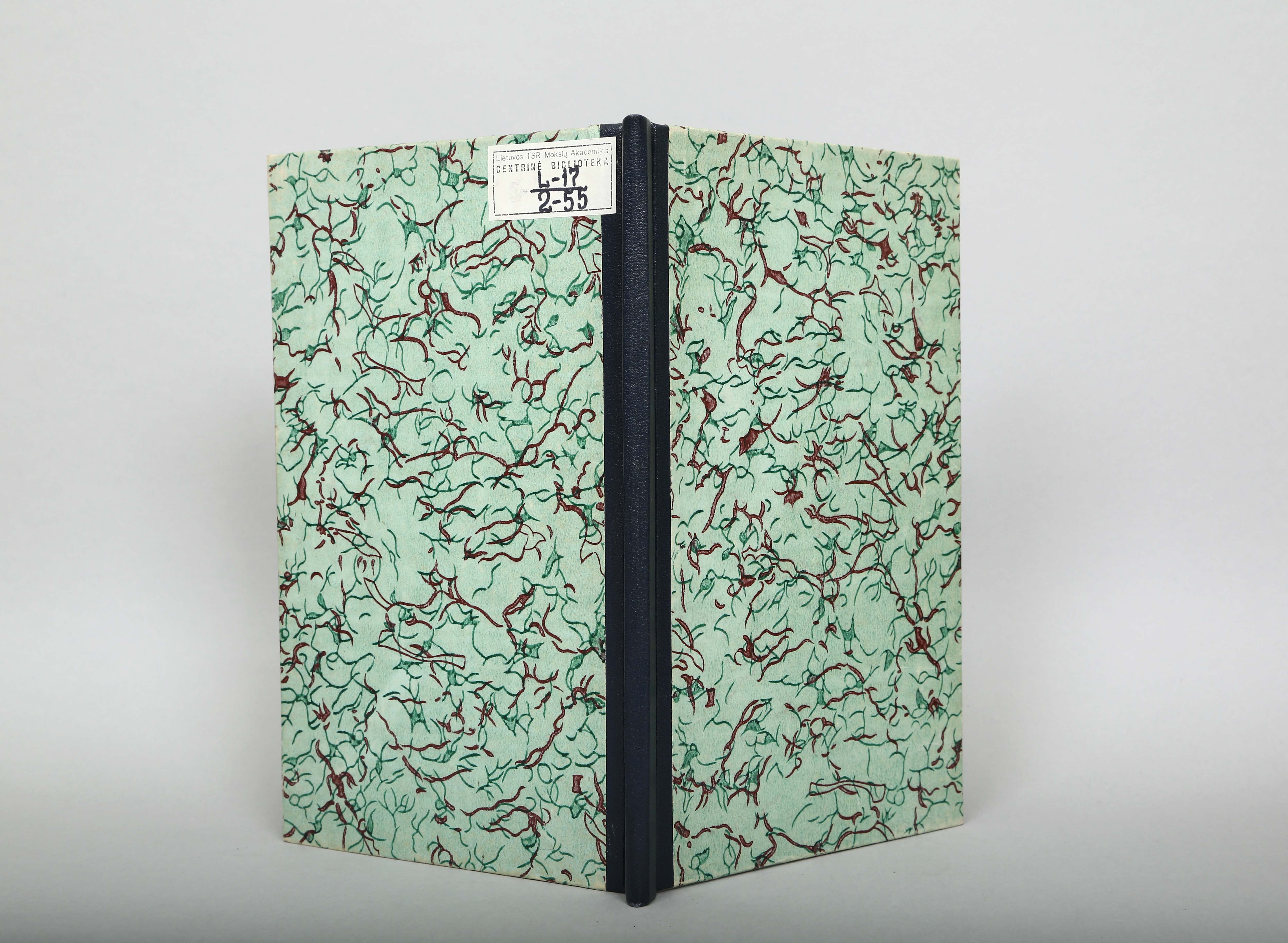 Įrišas: sudėtinis. Medžiagos: lederinas, margintas popierius
