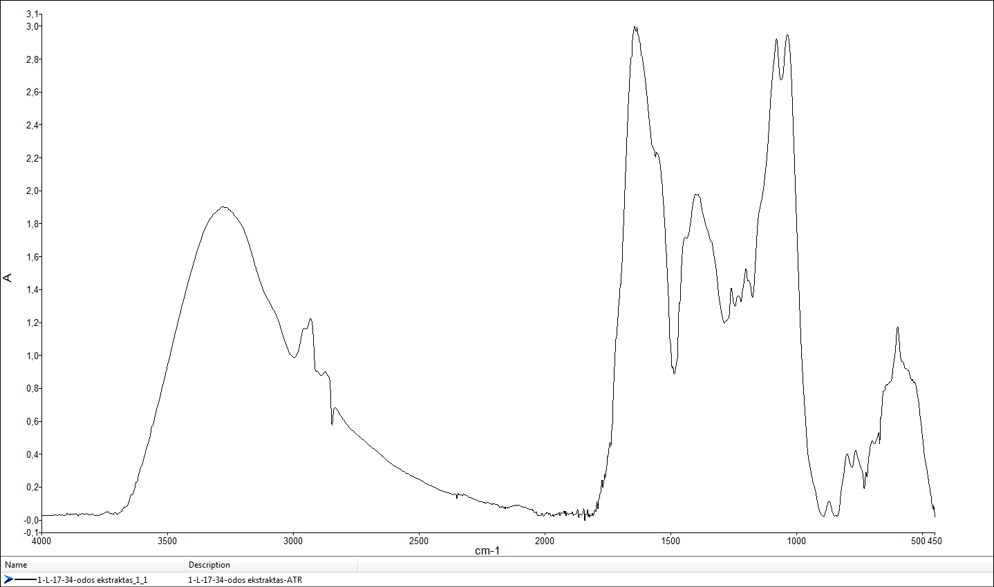 Mikrocheminiai ir instrumentiniai tyrimai: pH - 5,0; Geležies chlorido testas - teigiamas; Vanilino testas - teigiamas; Nitritinės rūgšties testas - neigiamas; Rodanino testas - teigiamas; Taninų klasė - Hidrolizuojami ir kondensuoti taninai; ATR-FTIR spektroskopija - Galo ir kondensuoti taninai.
