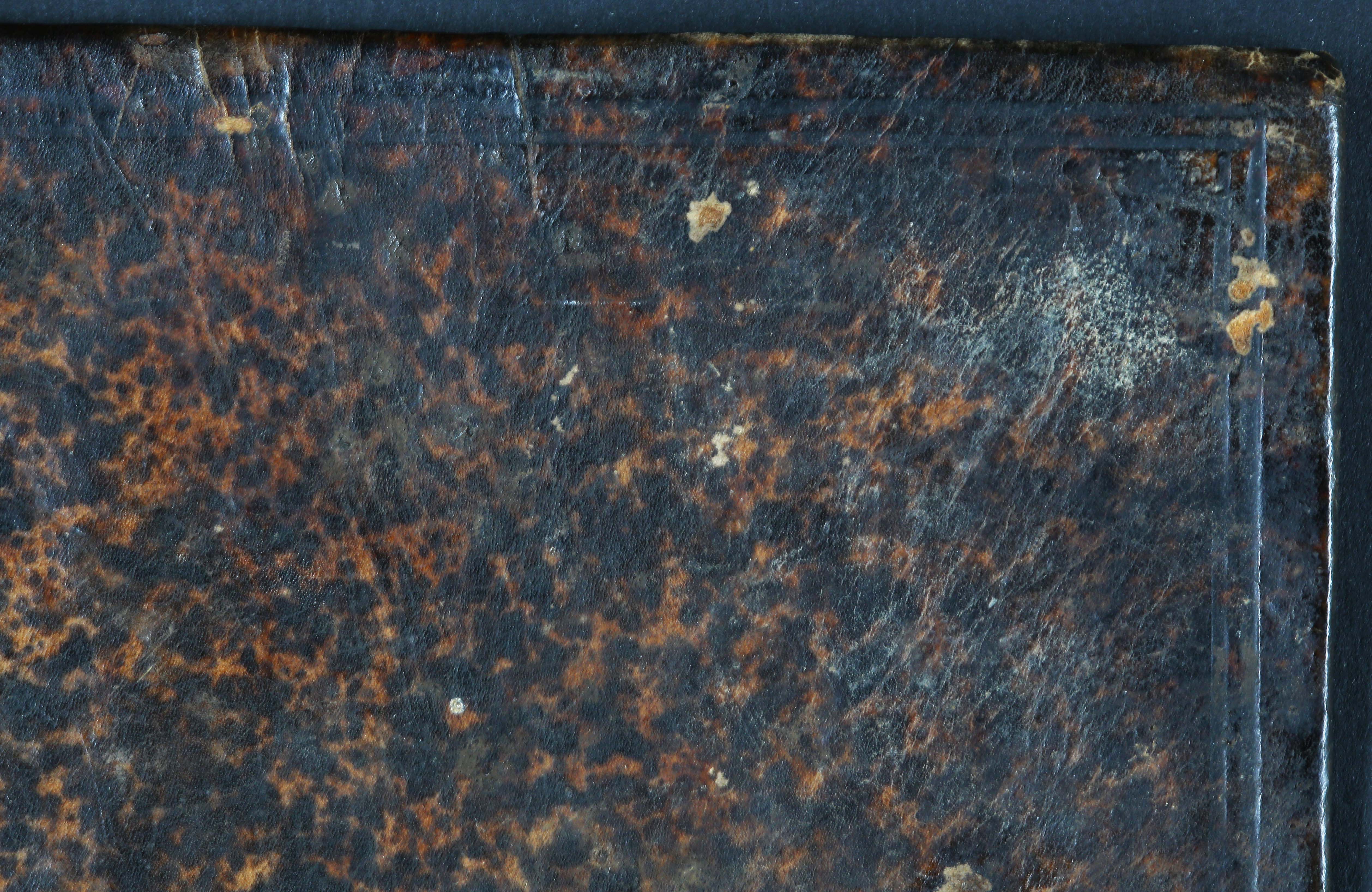 Įrišas: vientisas. Medžiagos: jautenos oda. Viršelio odinės dangos dekoro technika – marginimas taškymo metodu. Įspaudas: viršelio kraštinėse – dviejų brėžių apvadas, ties viršelio nugarėle irgi du brėžiai.