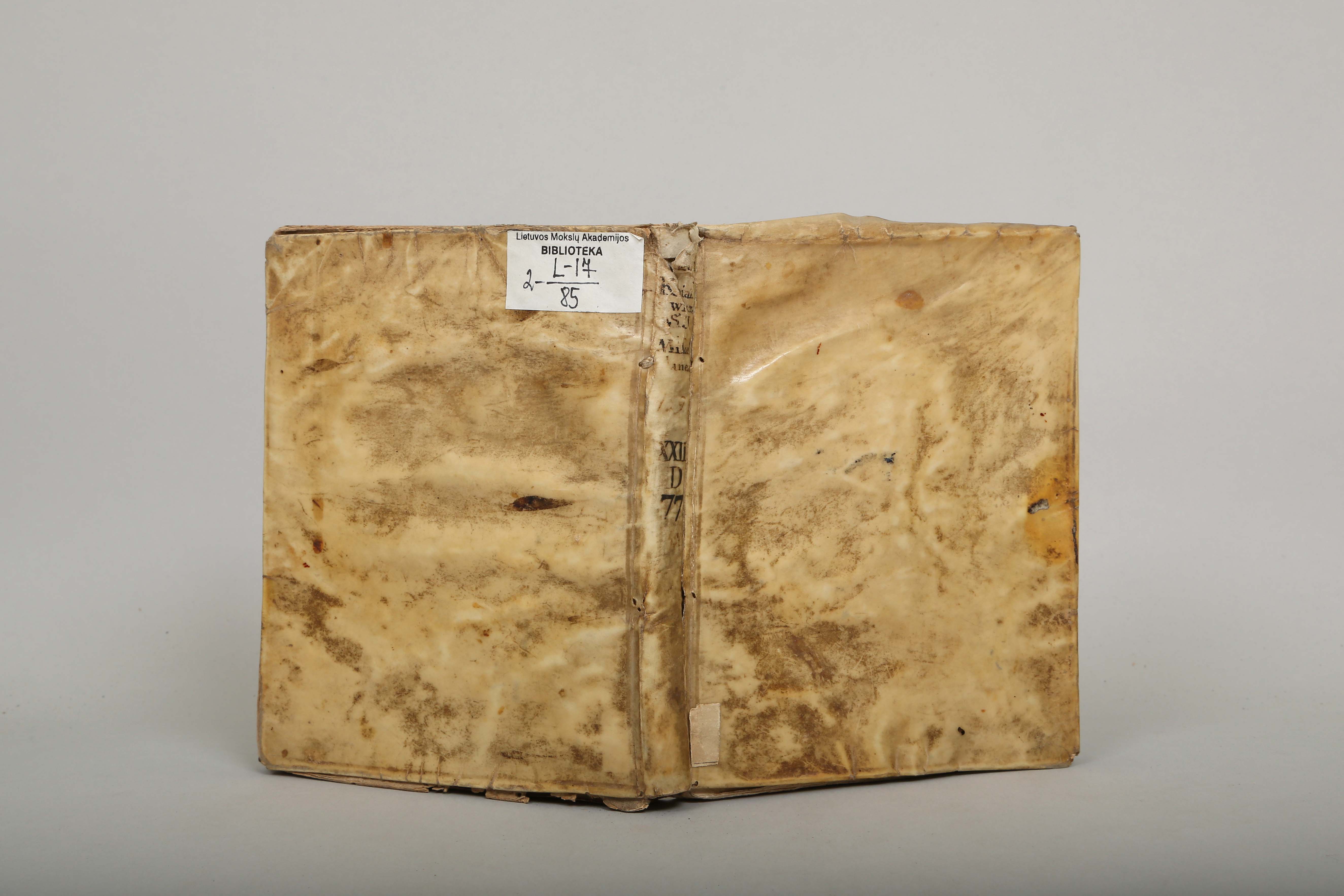 Įrišas knygos [Kojalavičius-Vijūkas, Albertas. Miscellanea rerum ad statum ecclessiasticum in Magno Lituaniae Ducatu pertinentium [...]. Vilnae [Vilnius] : typis Academicis, 1650.]