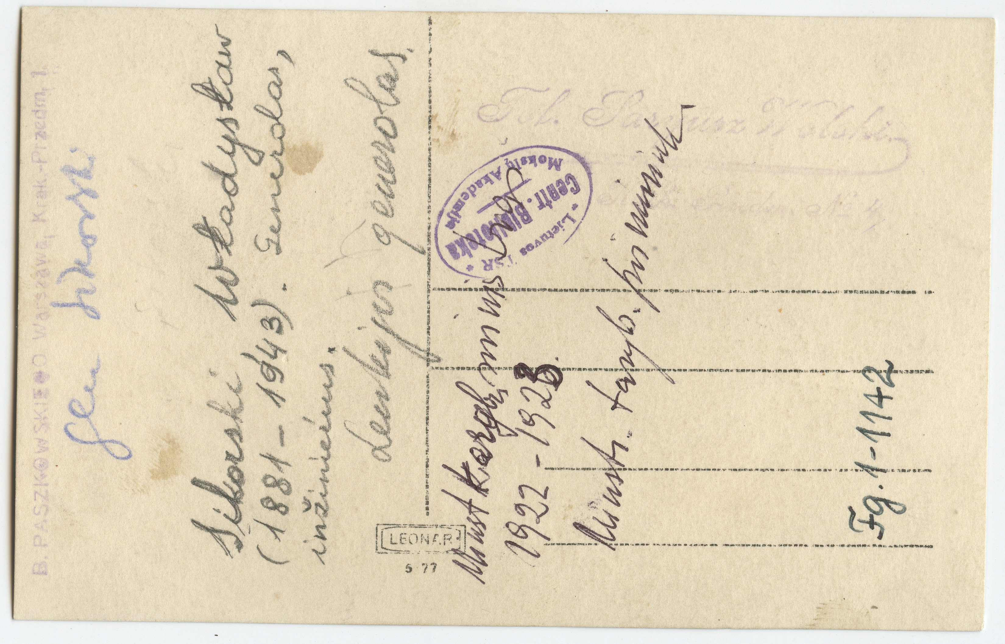 Lenkijos generolas Władysław Sikorski : [portretas] / fot. Sarjusz Wolski, Warszawa : [B.Paszkowskiego], [1922-1923], 1 fotografija : nespalvota ; 13.5 x 8.6 cm.