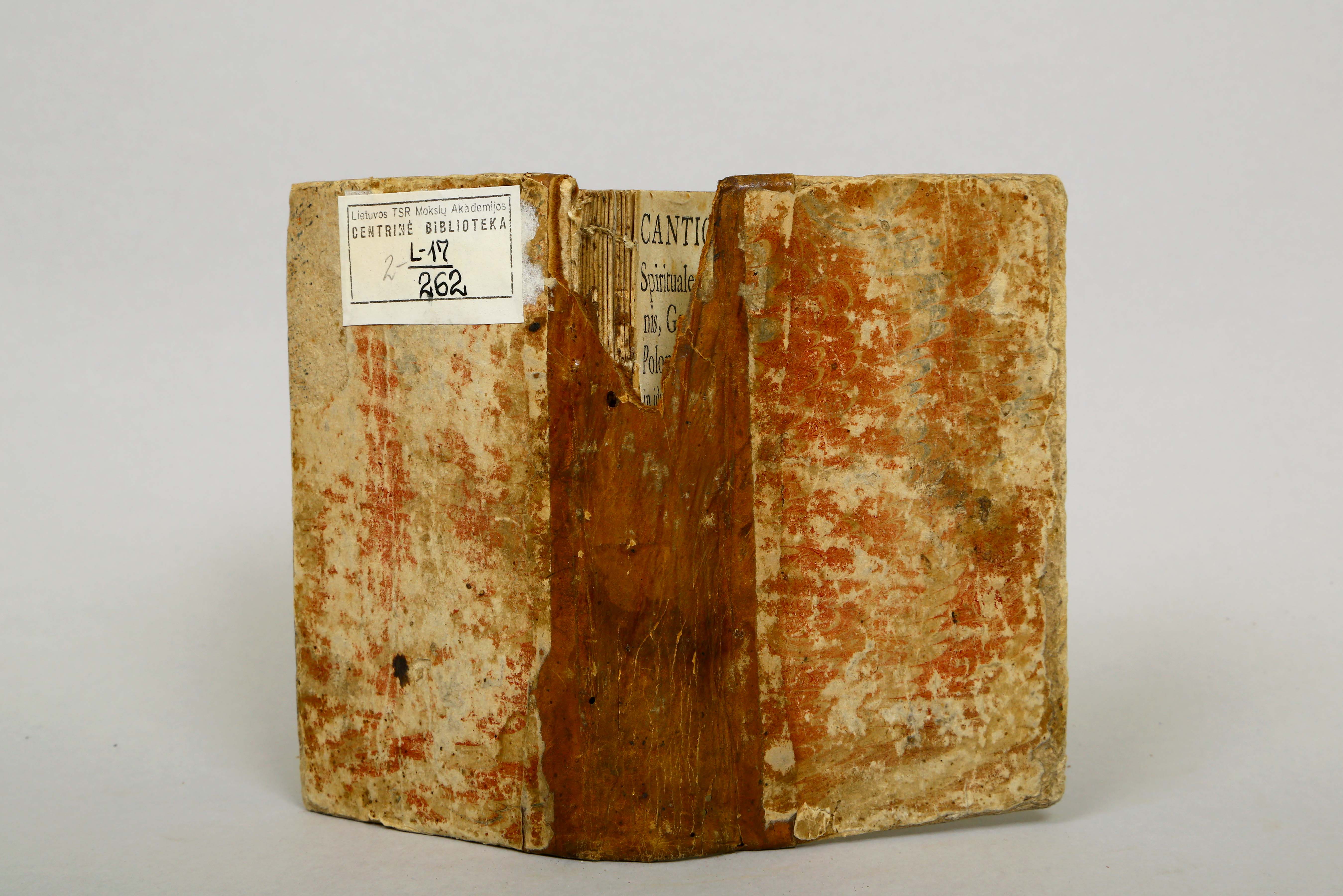 Įrišas knygos [Elgers, Juris. Cantiones spirituales ex Latinis, Germanicis et Polonicis translatae in idioma Lothavicum, [...]. Vilnae : typis Acad. Soc. Iesu, 1673.]