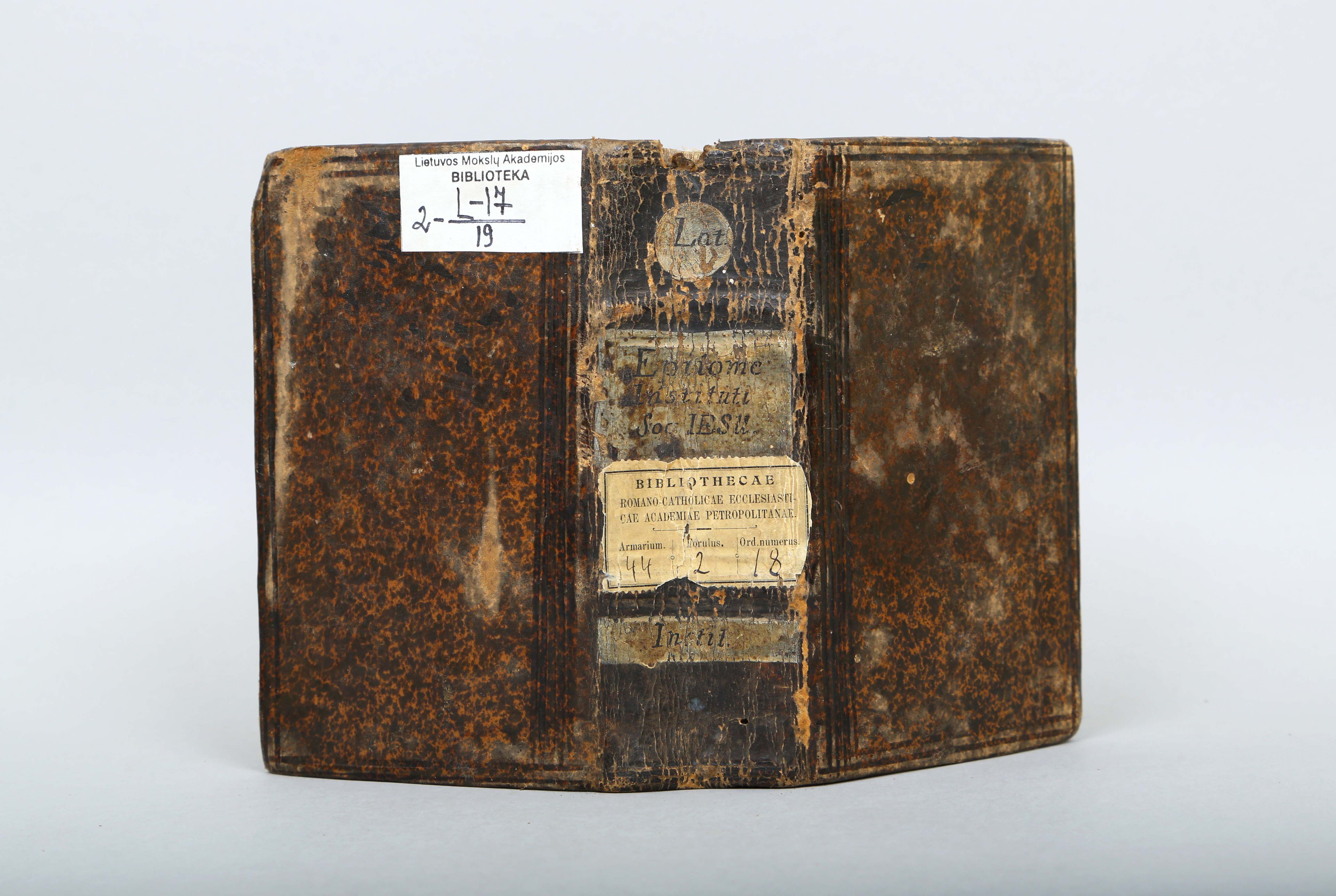 Įrišas knygos [Epitome instituti Societatis Iesu. Vilnae [Vilnius] : typis Acad. Soc. Iesu, 1690.]