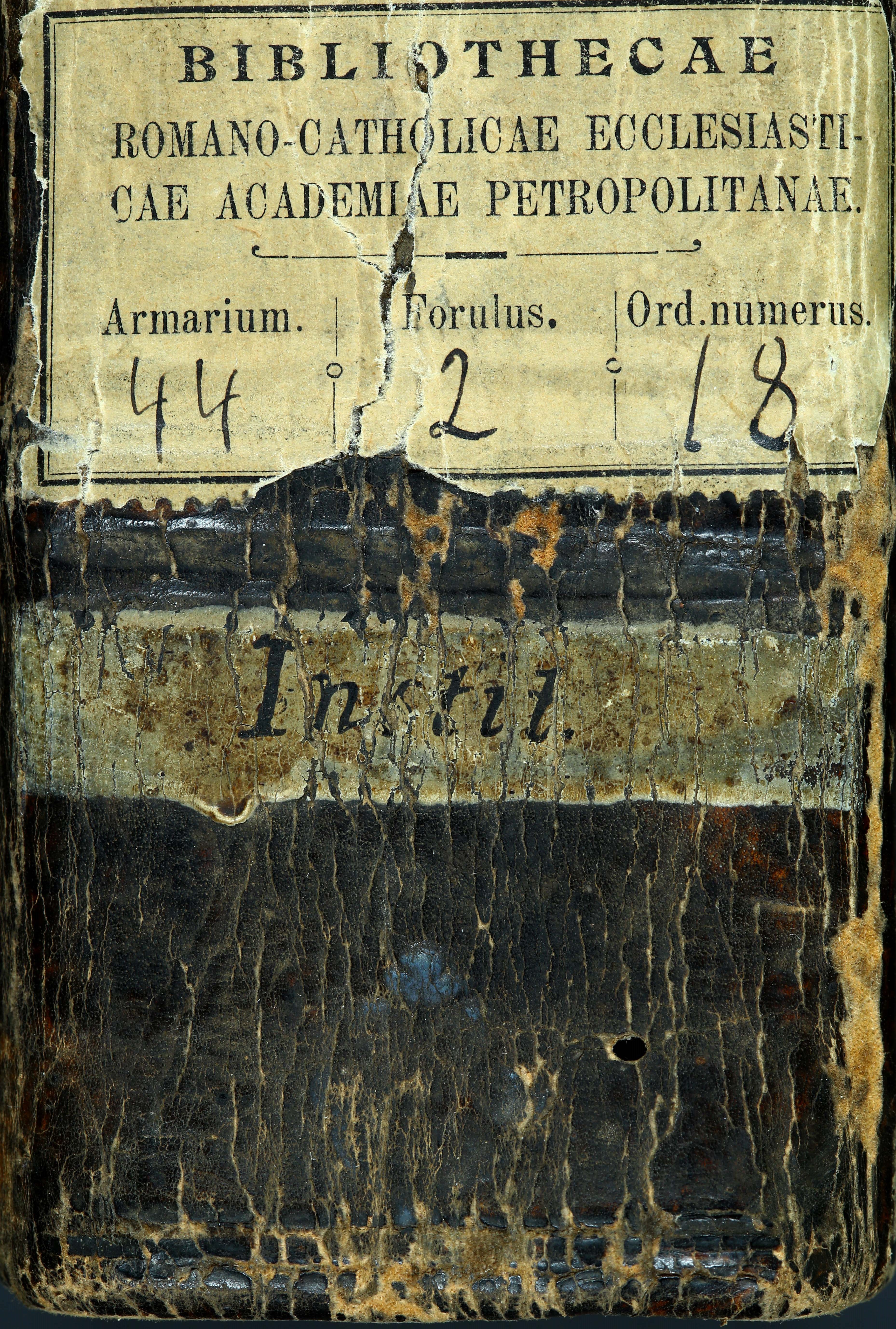| dc.description | Nuosavybės ženklai: Collegii Slucensis Societatis Jesu [įrašas]; Bibliothecae Romano-catholicae ecclesiasticae Academiae Petropolitanae [lipdė]. | - |