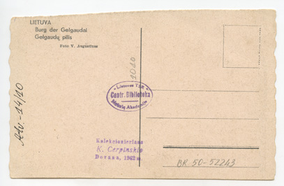 Lietuva : Gelgaudų pilis = Burg der Gelgaudai / foto V.Augustinas, Lietuva : leidėjas nenustatytas, 1942-1943, 1 atvirukas : tonuotas ; 8.9 x 13.9 cm.