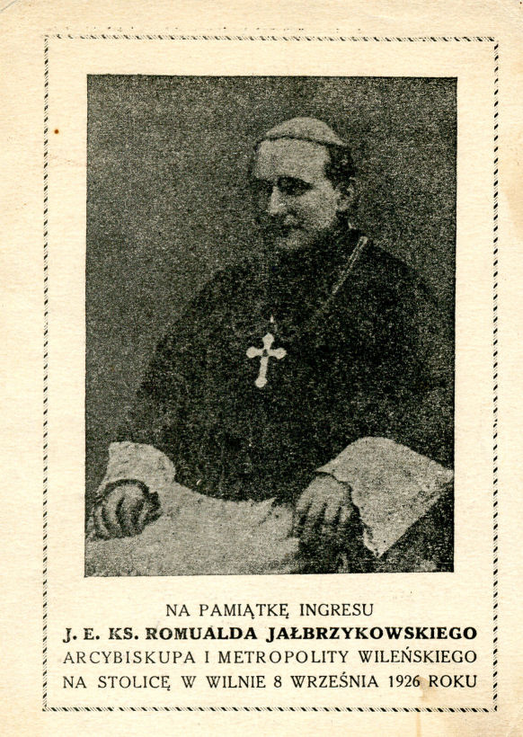 Na pamiątkę ingresu J.E. ks. Romualda Jałbrzykowskiego : arcybiskupa i metropolity Wileńskiego na stolicę w Wilnie 8 września 1926 roku. Wilno [Vilnius] : druk. "Lux", [1926].