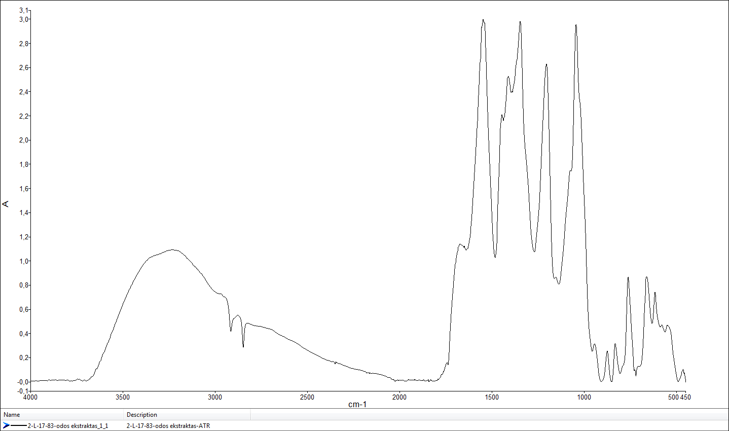 Mikrocheminiai ir instrumentiniai tyrimai: pH - 4,1; Geležies chlorido testas - teigiamas; Vanilino testas - neigiamas; Nitritinės rūgšties testas - neigiamas; Rodanino testas - teigiamas; Taninų klasė - Hidrolizuojami taninai; ATR-FTIR spektroskopija - Galo taninai.