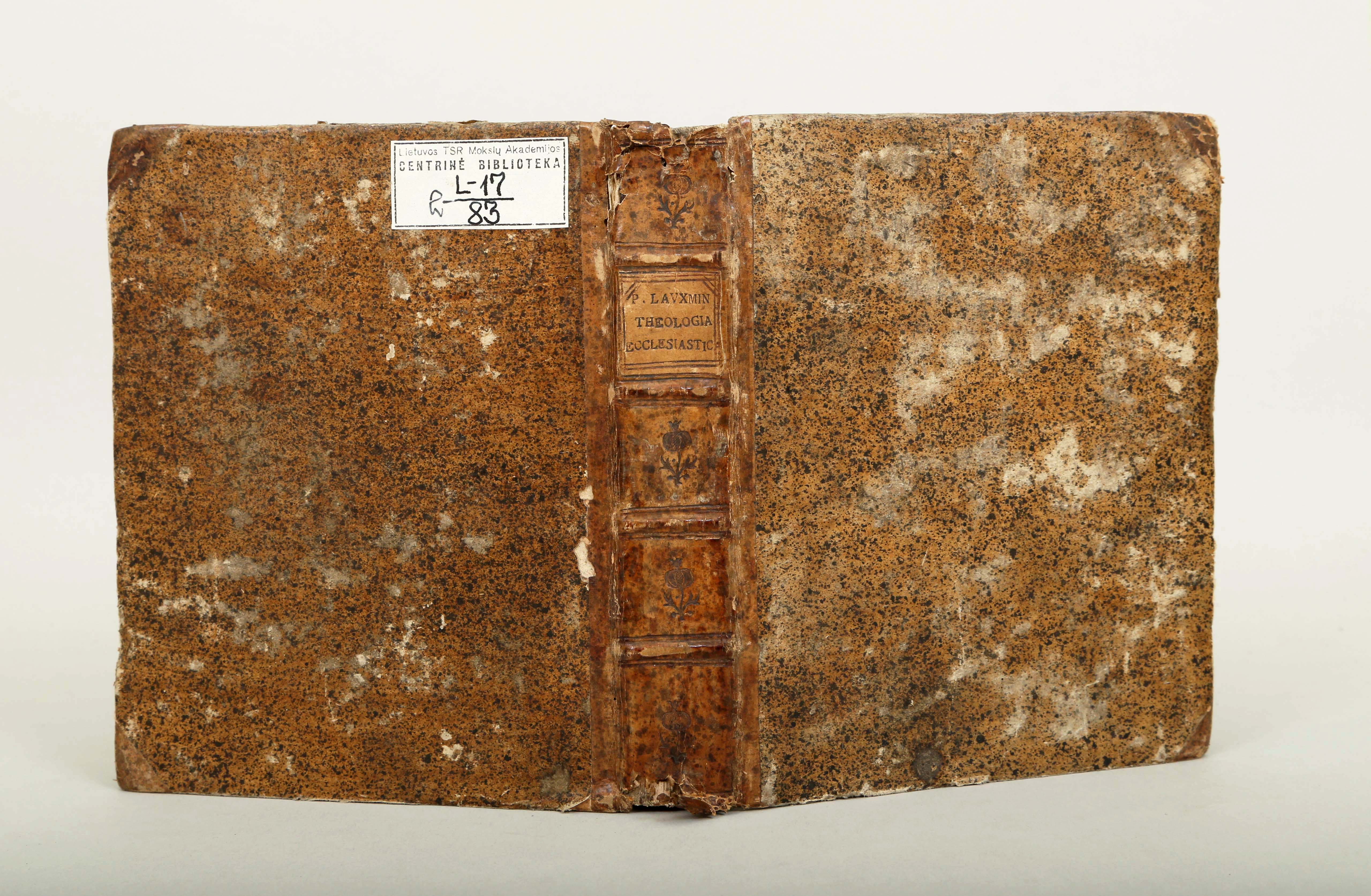 Įrišas knygos [Liauksminas, Žygimantas. Theologia ecclesiastica, in qua materiae omnes, quae in Ecclesia [...]. Vilnae : typis Academicis, 1675.]