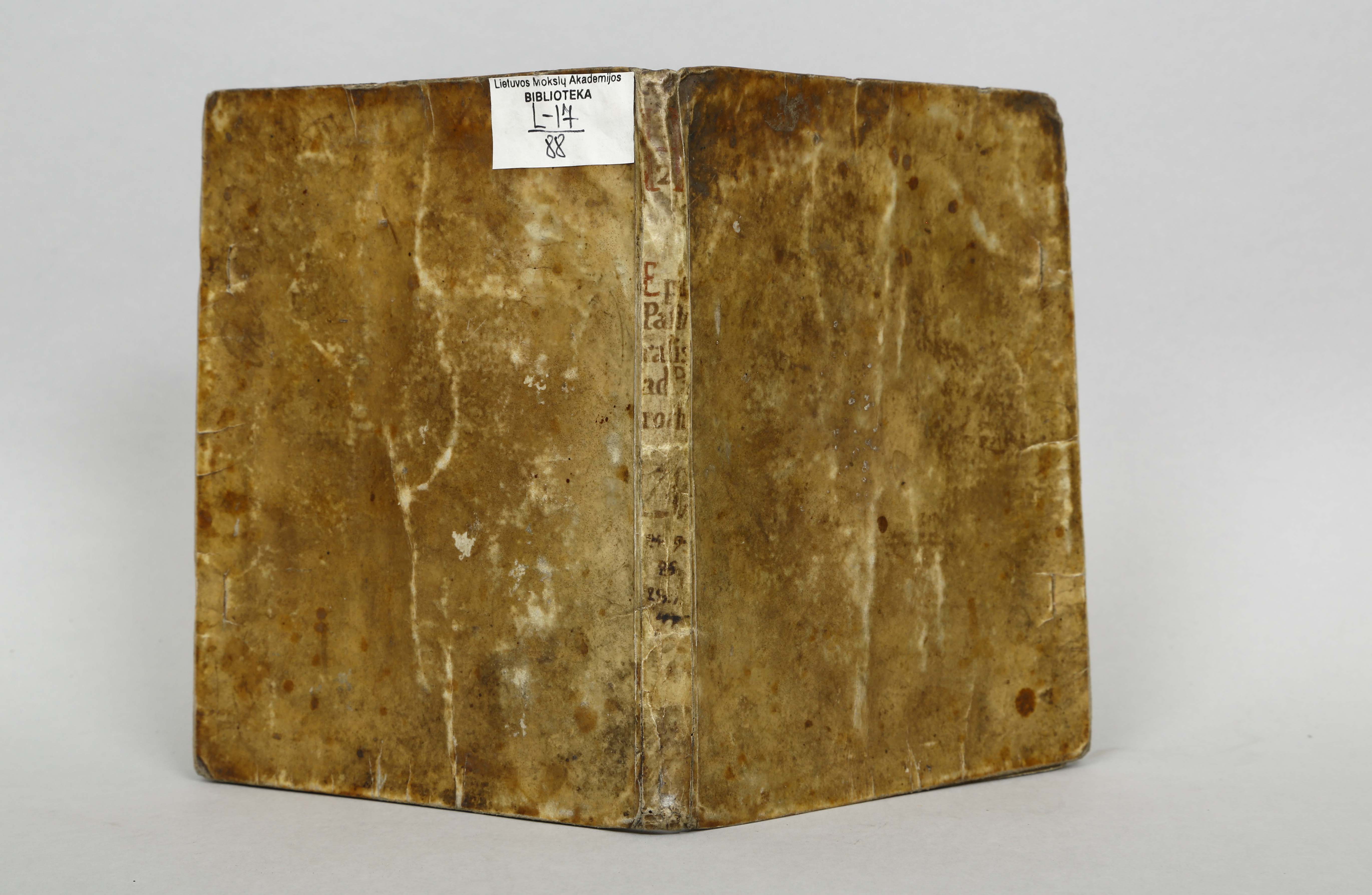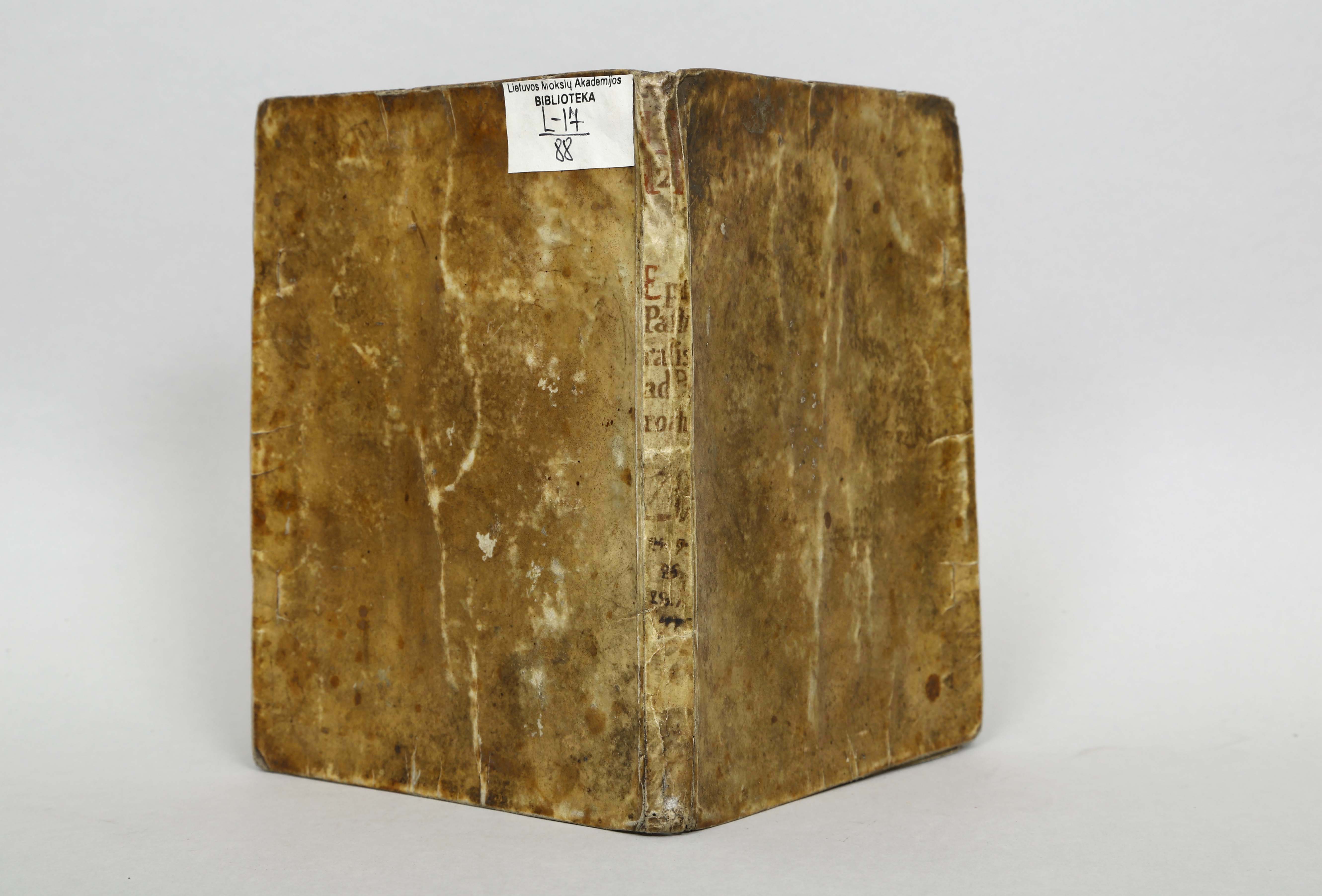 Įrišas knygos [Maciejowski, Bernard. Epistola pastoralis ad parochos / Bernardi Macieiowski, s.r.e. presbyteri cardinalis [...]. Vilnae : typis Academicis Soc. Iesu, 1669.]