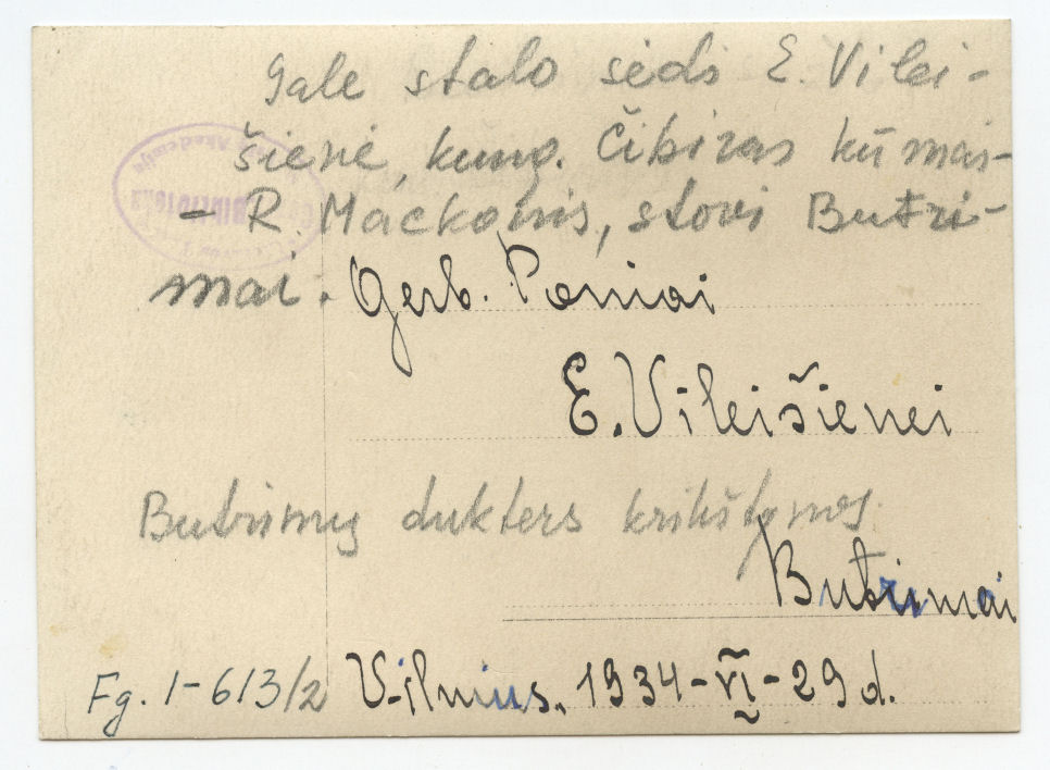 [Aldutės Butrimaitės krikštynos Vilniuje]. [Vilnius] : [s.n.], [1934], 2 fotogr.