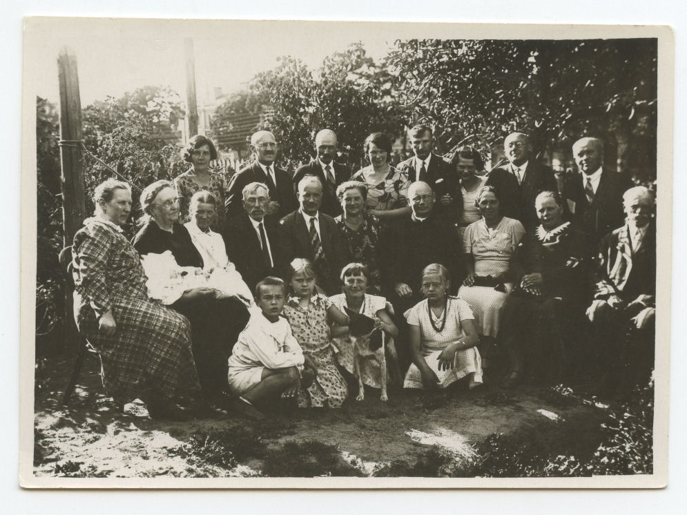 Nuotraukose: Emilija Vileišienė, kunigas K. Čibiras, R. Mackonis, Butrimai ir kt. svečiai