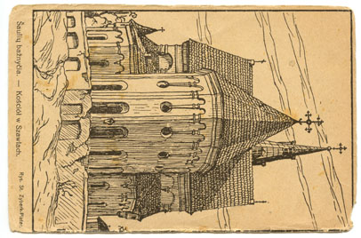 Šaulių bažnyčia : Kościół w Szawlach / rys. St. Zyberk-Plater, Lietuva : St. Zyberk-Plater, 1908-1910, 1 atvirukas : tonuotas ; 14.3 x 9.2 cm.