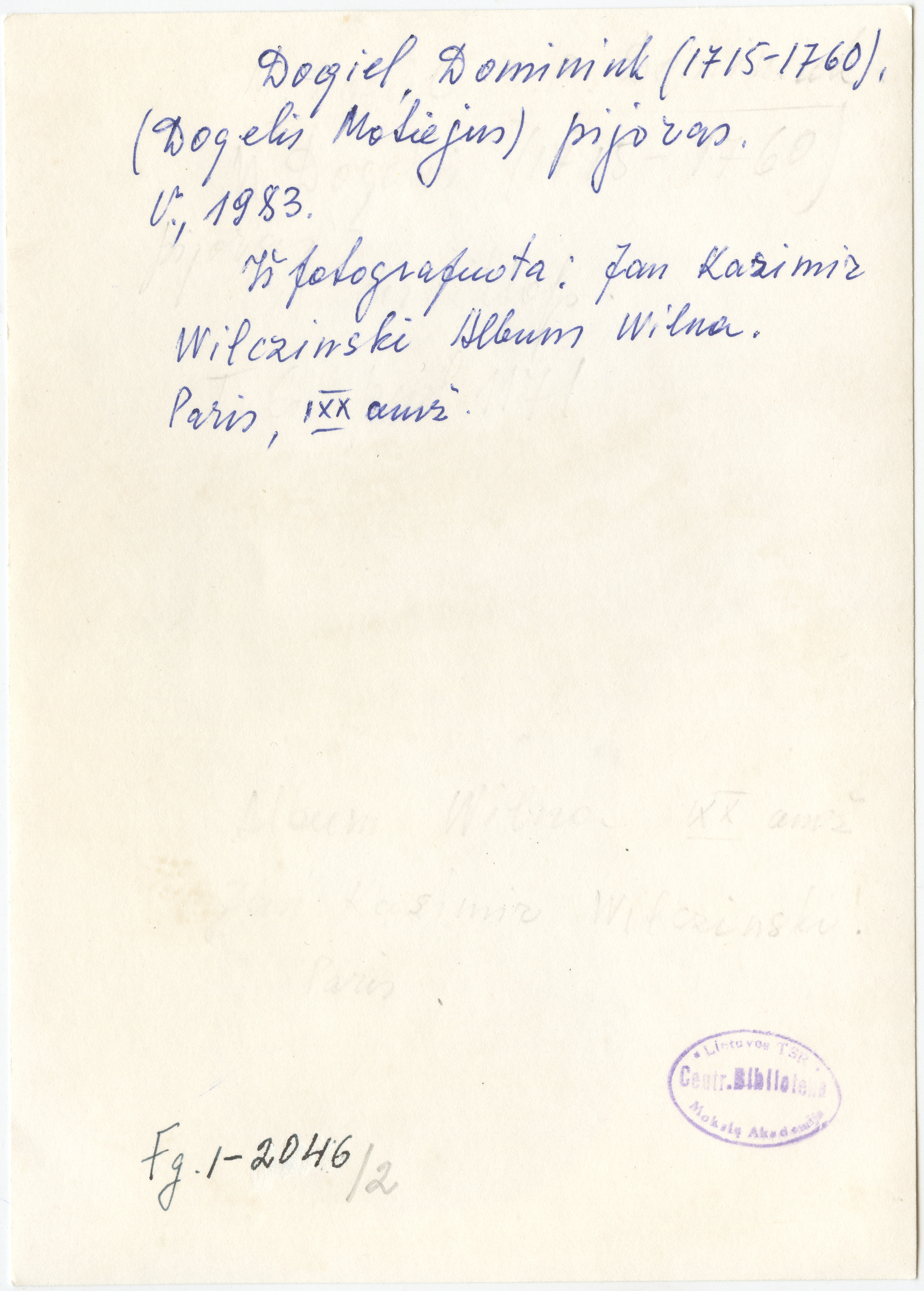 Motiejus Dominykas Dogelis : [portretas] : [J.K. Vilčinskio litografijos fotoreprodukcija], [Vilnius] : [leidėjas nenustatytas], [19--?], 2 fotografijos : nespalvotos ; 17.5 x 12.4 ; 19 x 13.6 cm.