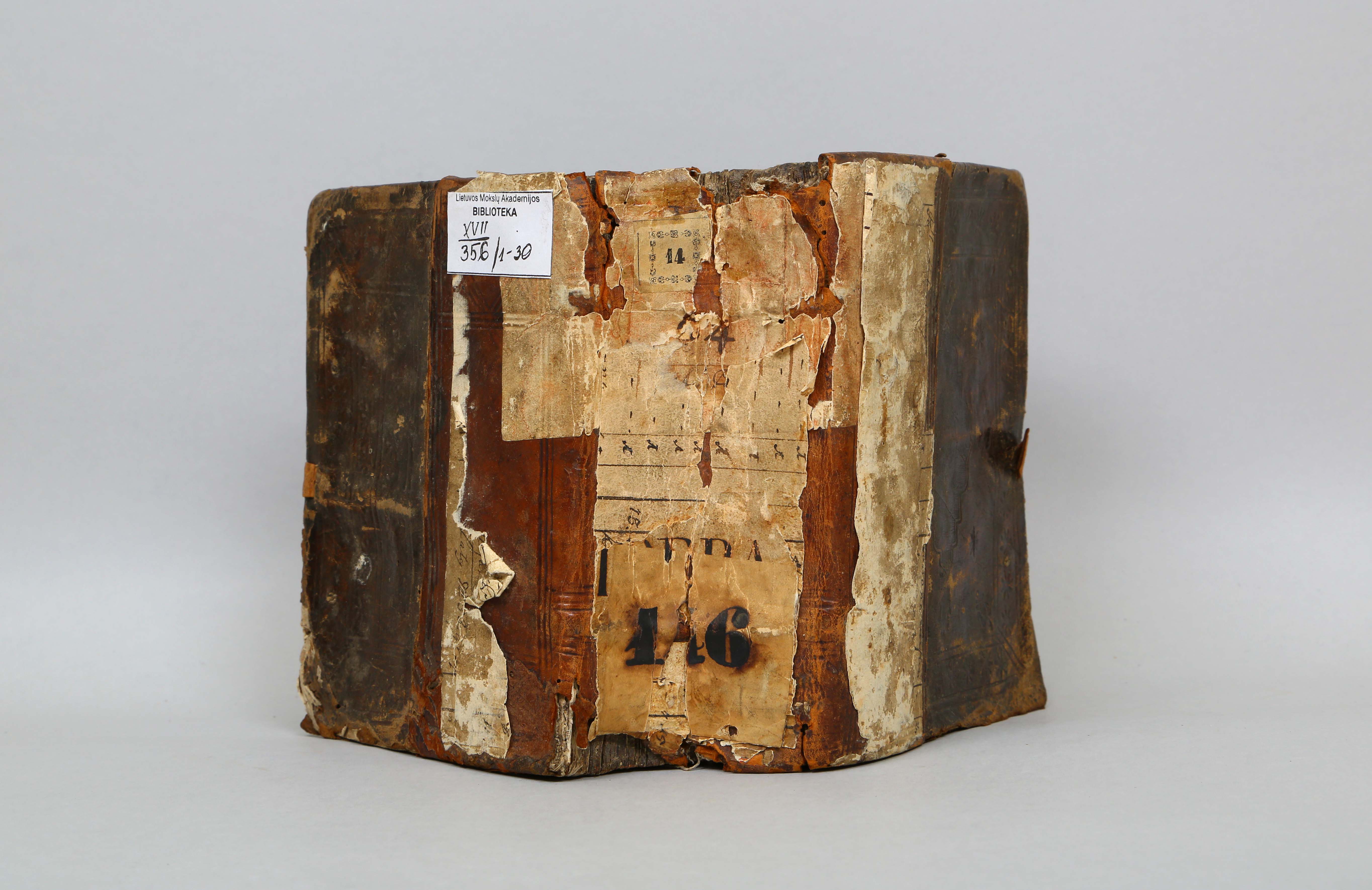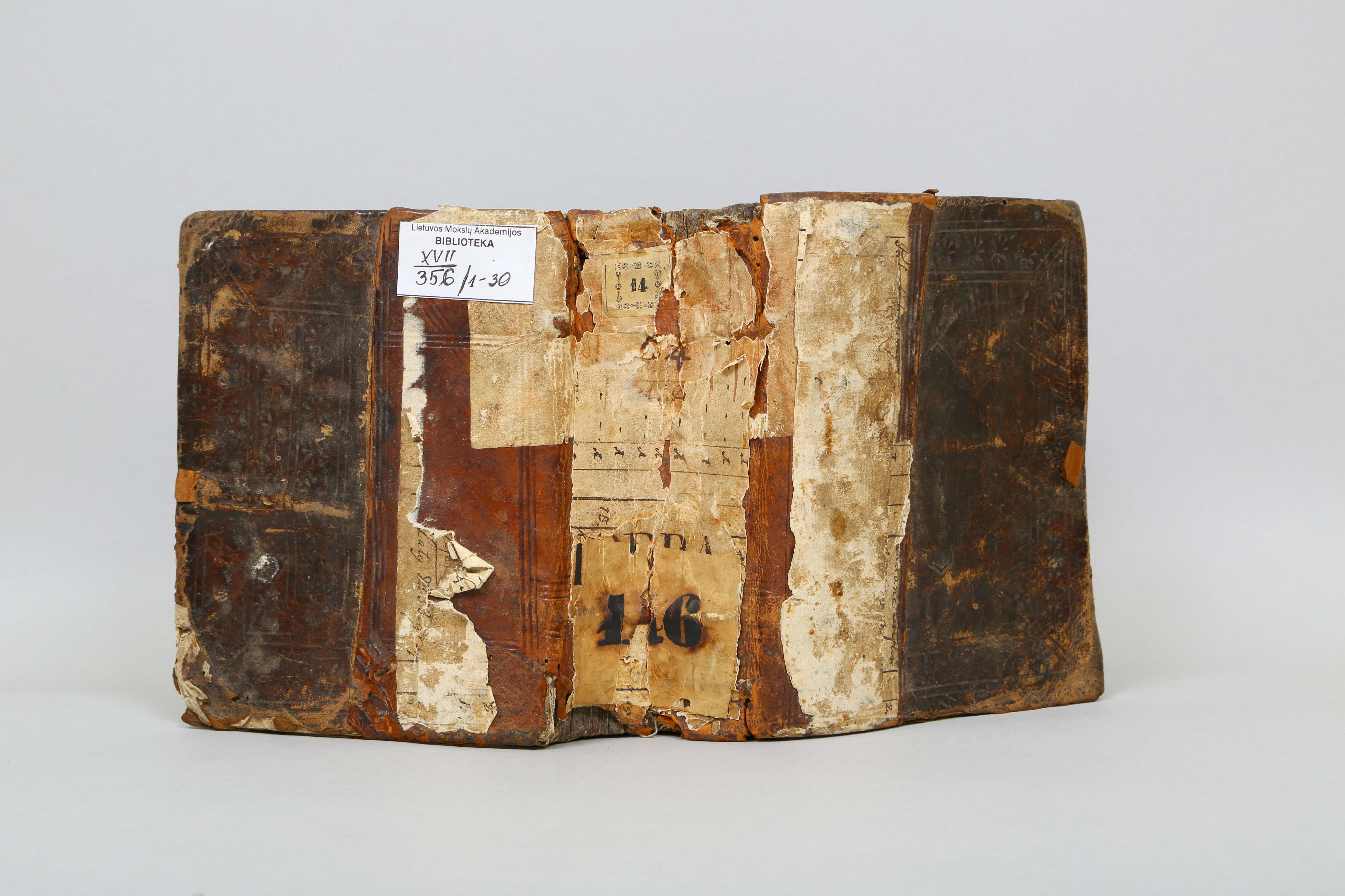 Konvoliuto XVII/356/1–30 įrišas: sudėtinis. Medžiagos: avenos oda. Viršelis jungtas iš kelių istorinių odinių viršelių; vėlyvesnė odinė danga dengia du trečdalius viršelio; ši danga – vienspalvė, su geometriniu įspaudų ornamentu. Ankstyvesnės odinės dangos dekoro technika – vienspalvė, su įvairių spaudų kompozicija. Raišteliai.