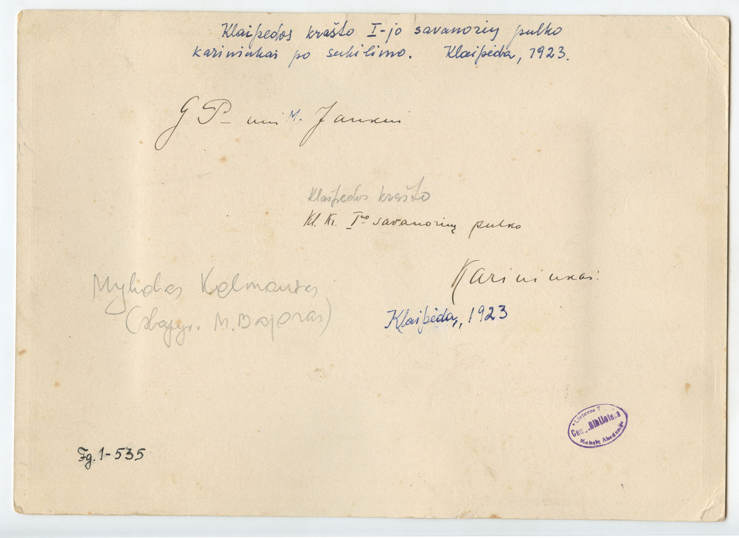 [Klaipėdos krašto 1-ojo savanorių pulko karininkai]. [Klaipėda] : [s.n.], [1923], 1 fotogr.