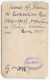 Leonas XIII : [portretų fotoreprodukcijos], [Publikavimo vieta nenustatyta] : [leidėjas nenustatytas], [1878-1895], 6 fotografijos : tonuotos ; 13.8 x 9.8 ; 16.5 x 10.9 cm ir mažiau.