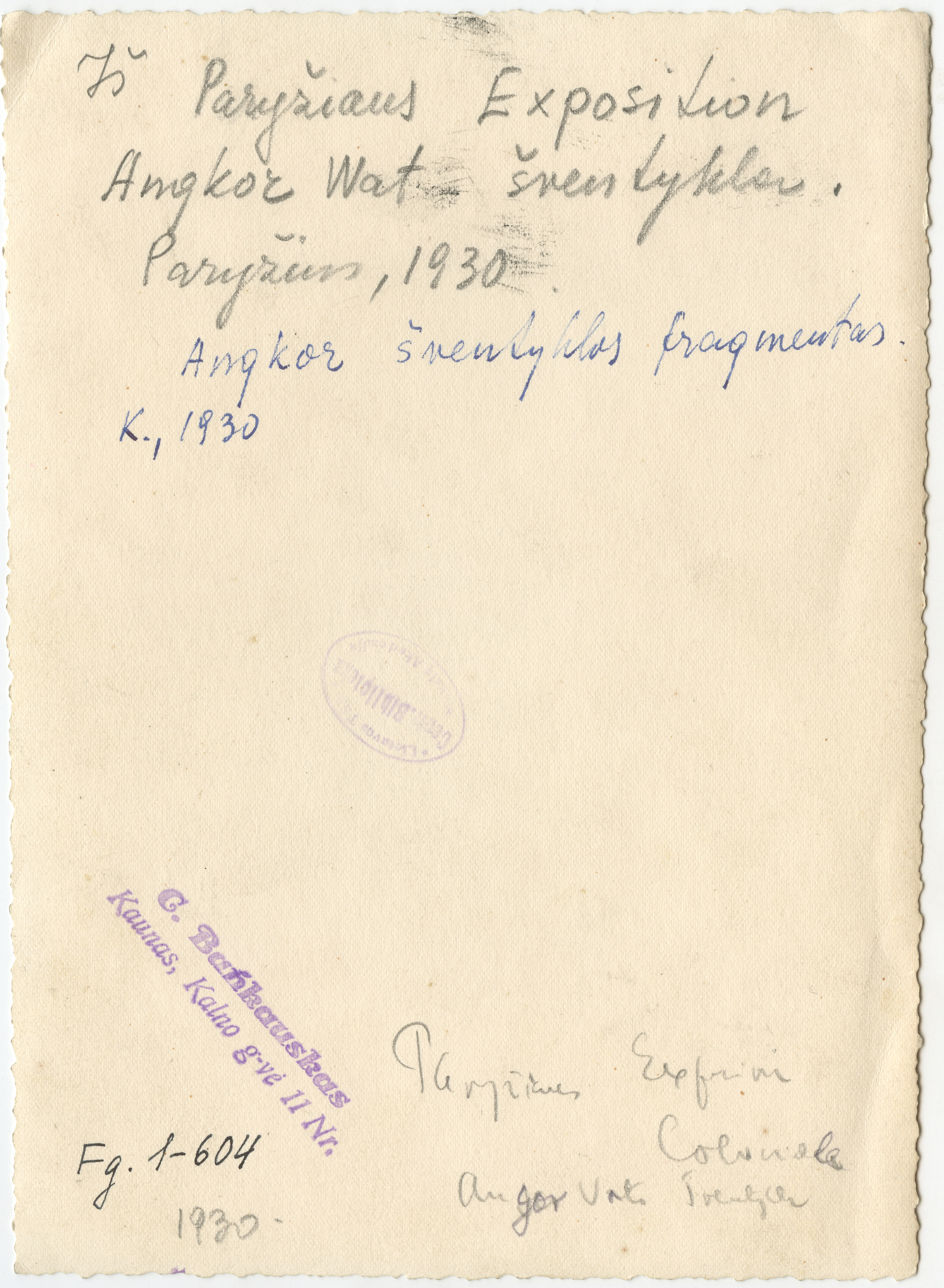 Angkor Wat šventyklos fragmentas / [fot.] G.Bankauskas, [Kaunas] : [G.Bankauskas], [1930], 1 fotografija : nespalvota ; 18.7 x 13.5 cm.