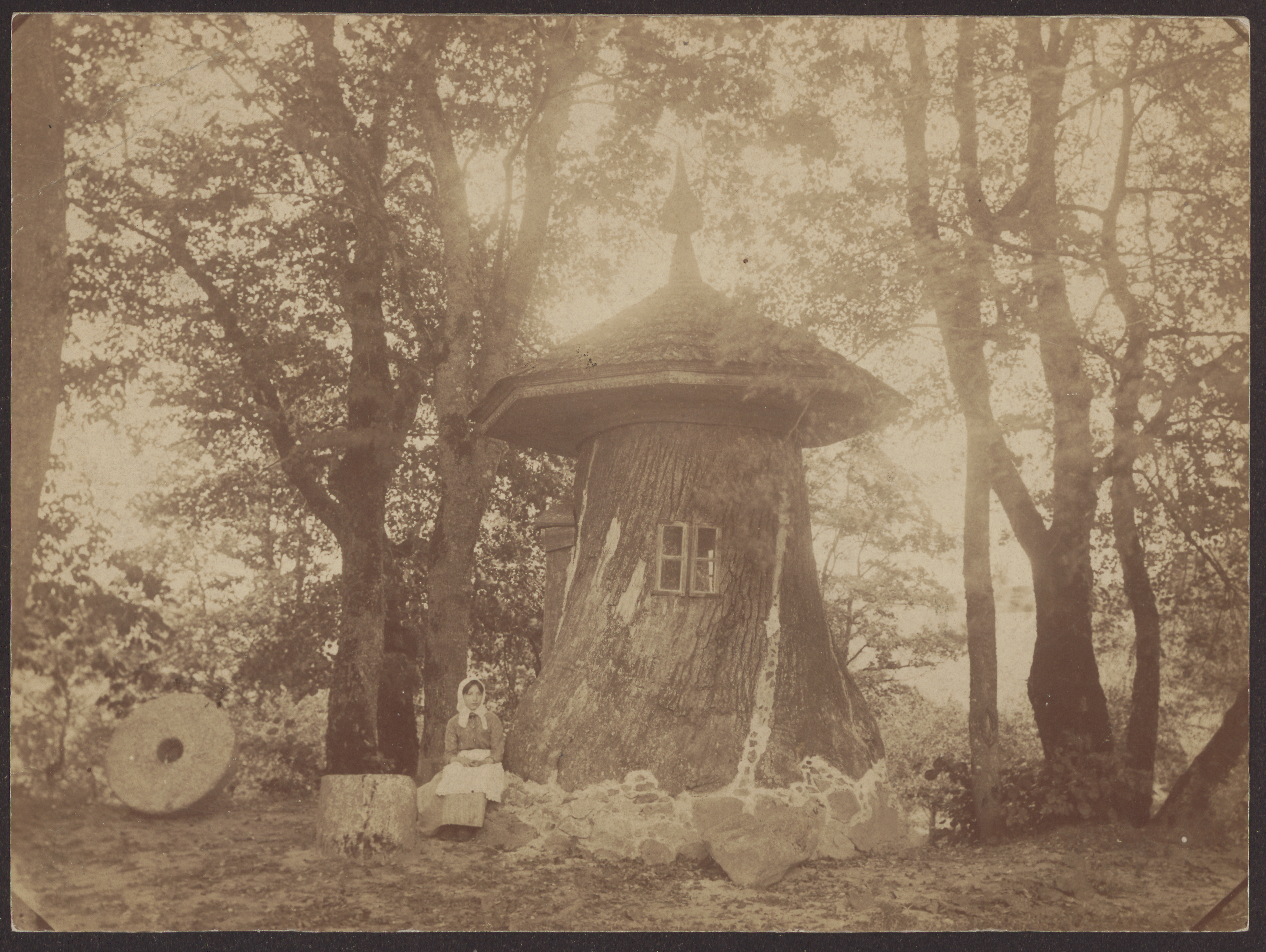 Jauna panelė prie Dionizo Poškos Baublio Bijotuose, [Bijotai] : [leidėjas nenustatytas], [1906], 1 fotografija : tonuota ; 16.8 x 22.8 cm.