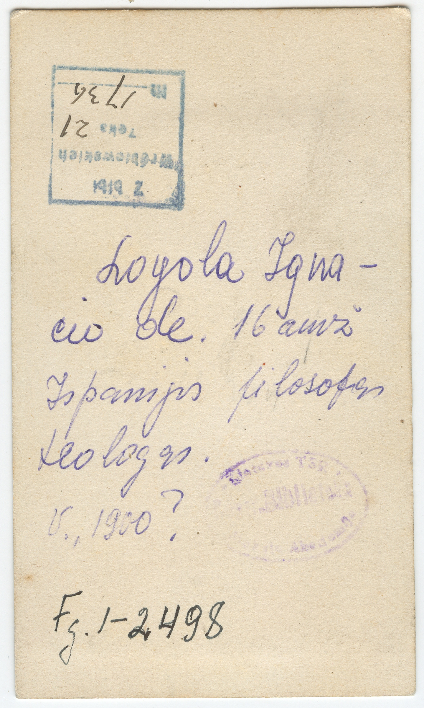 Šventasis Ignacas Lojola : [litografijos fotoreprodukcija], [Publikavimo vieta nenustatyta] : [leidėjas nenustatytas], [19--?], 1 fotografija : tonuota ; 7.9 x 5.4 ; 10 x 5.8 cm.