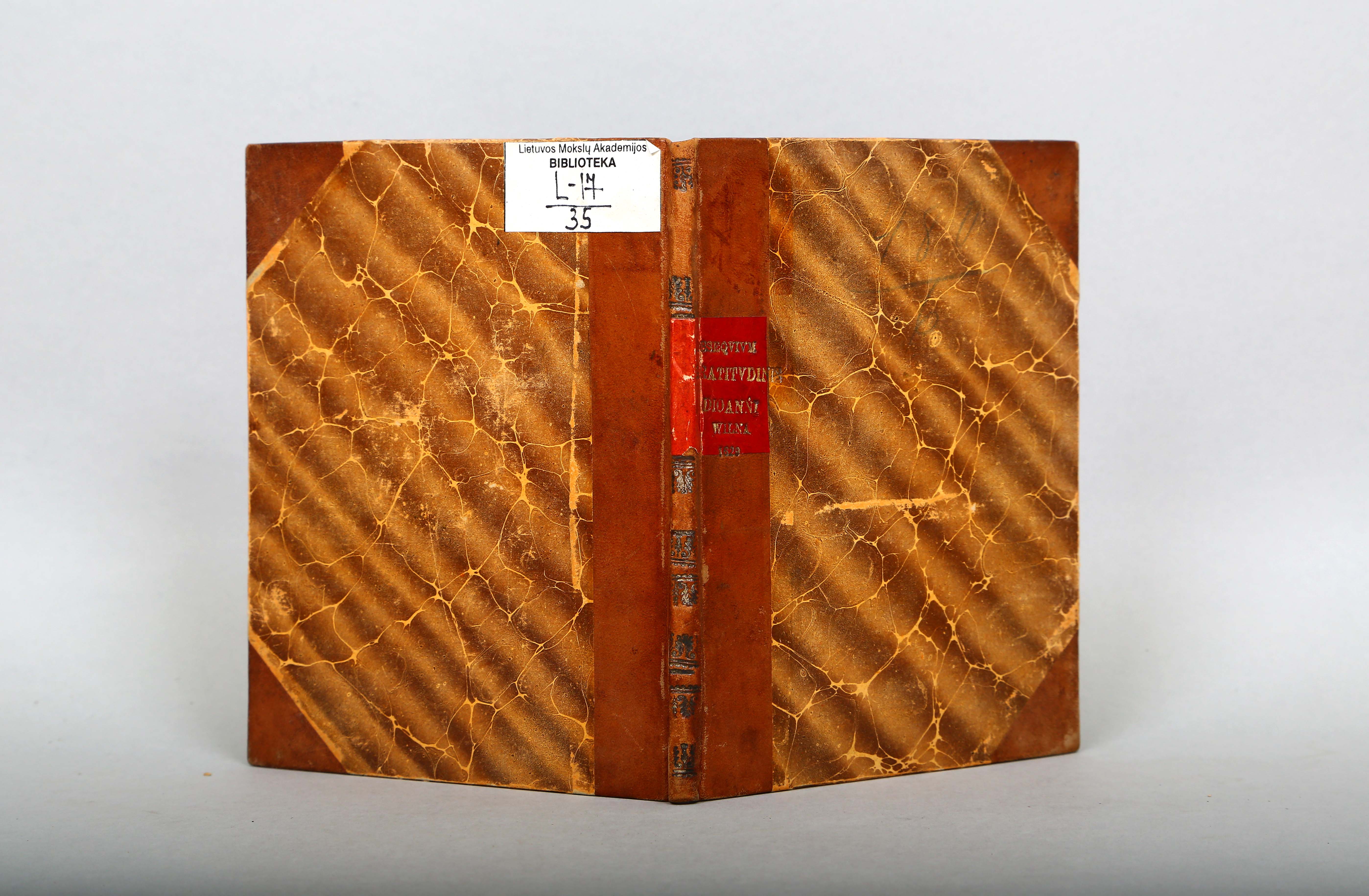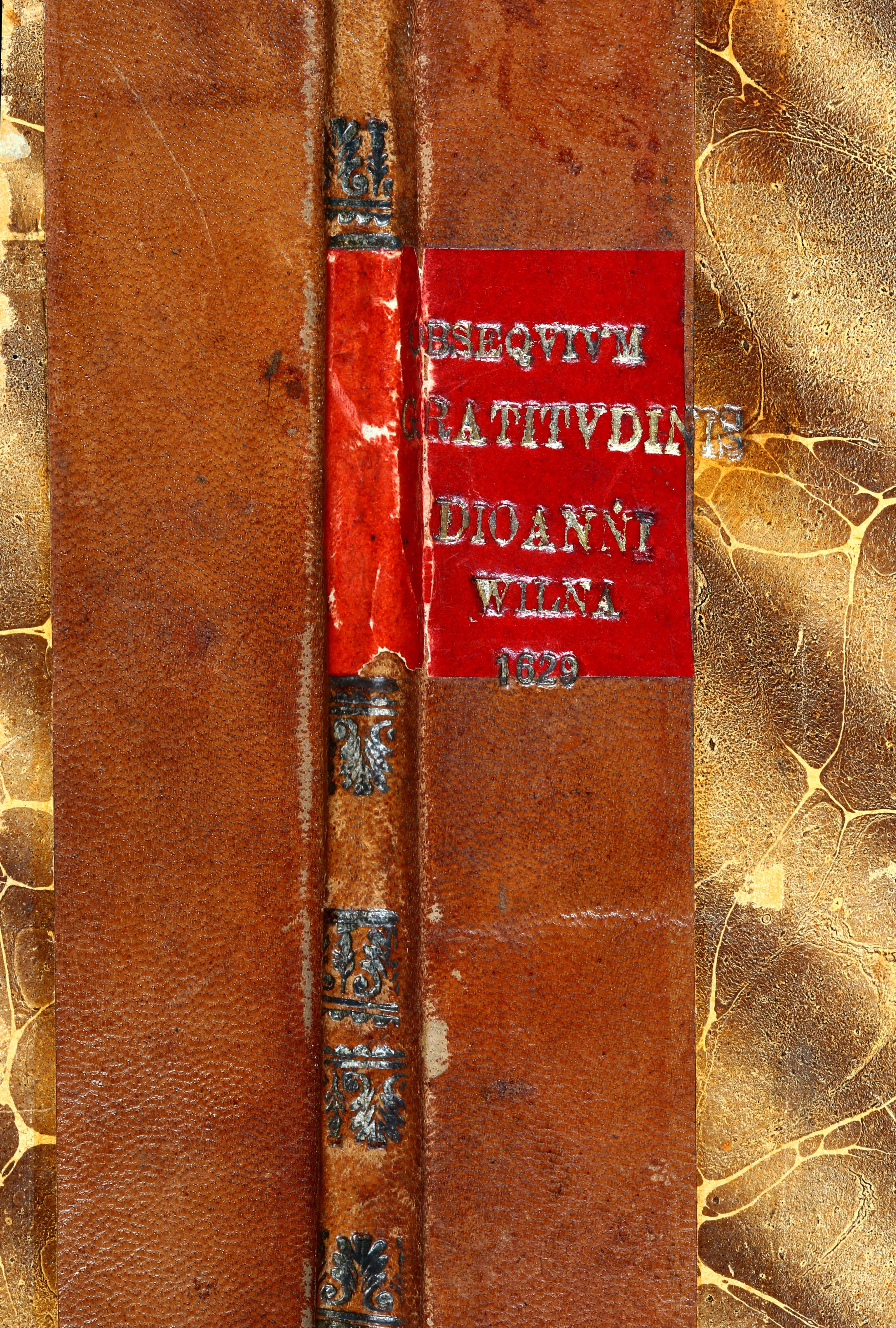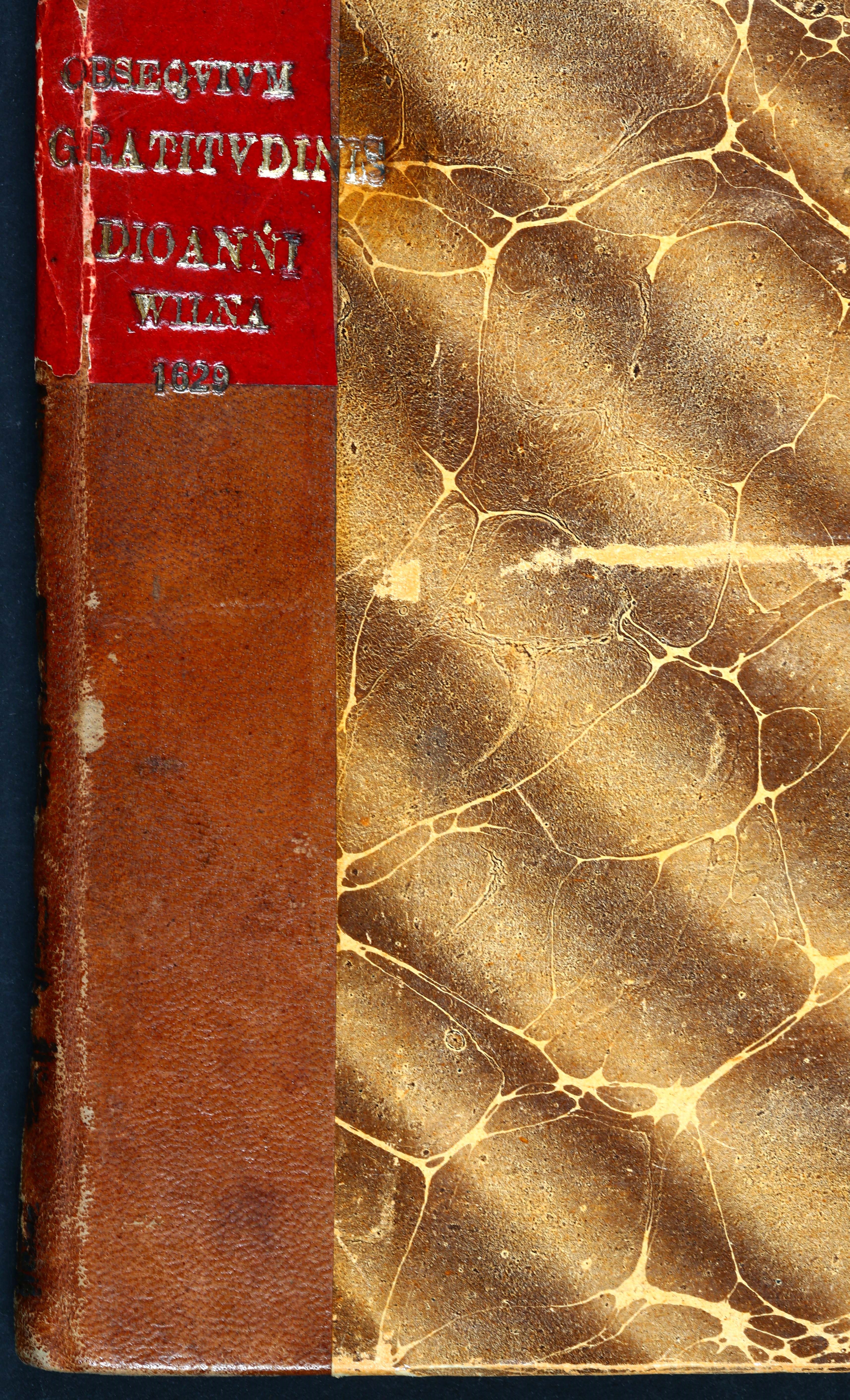 Įrišas knygos [Sarbiewski, Maciej Kazimierz. Obsequium gratitudinis illustrissimo domino d. Ioanni Carolo Chodkiewicz, [...]. Vilnae : typis Academ. Societatis Iesu, [1619].]