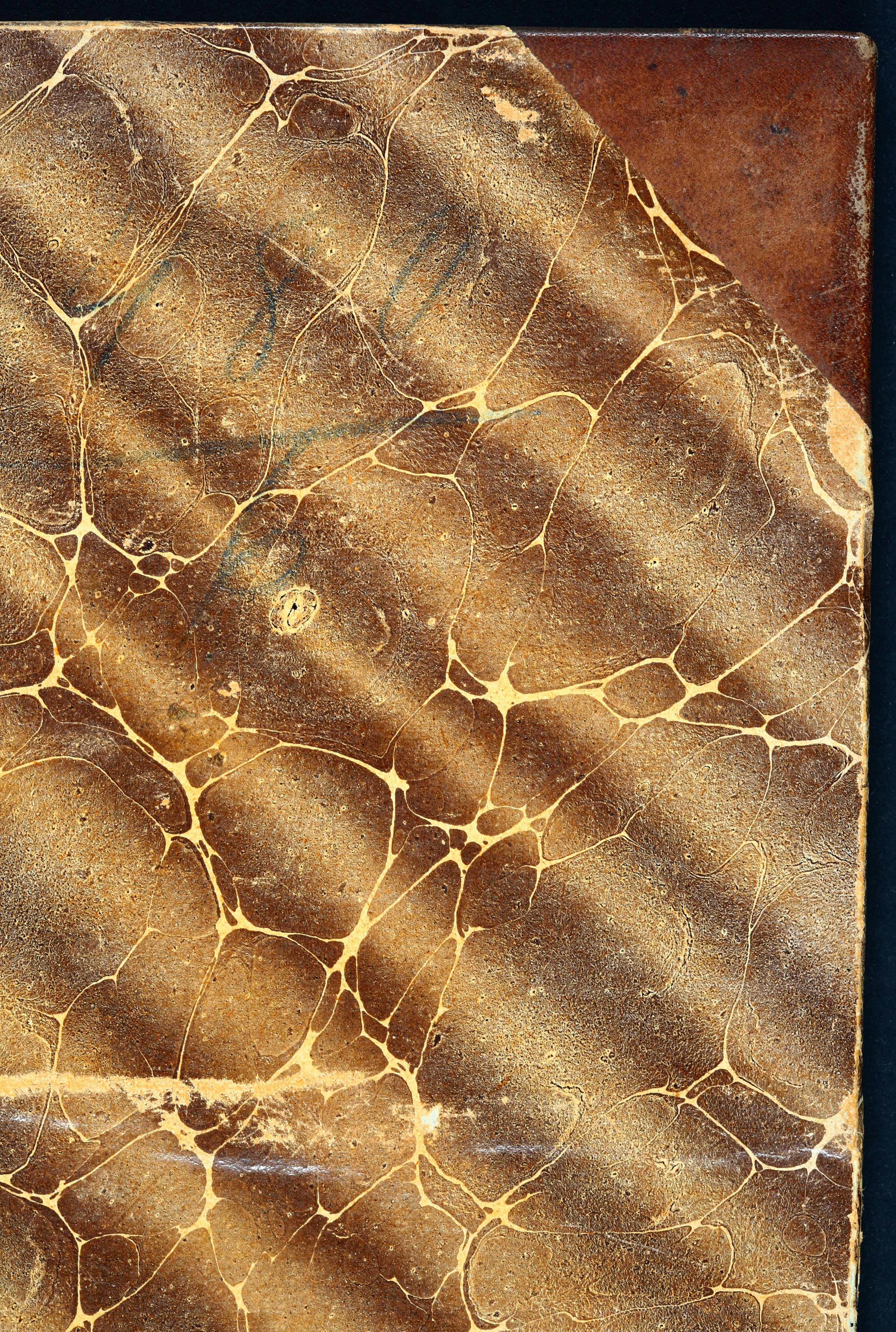 Įrišas: sudėtinis. Medžiagos: ožkenos oda, popierius. Viršelio oda - vienspalvė, dekoras – paauksintų įspaudų kompozicija. Viršelio viršutinės dalies viršuje (ir nugarėlėje) priklijuota prieklija su įspaustais antraštiniais duomenimis. Prieklija – vienspalvė. Viršelio popierinės dangos dekoro technika – marginimas plūduriuojančiais dažais.