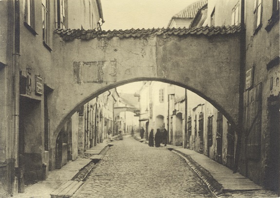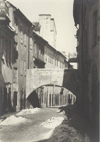 Nuotraukose: Žydų gatvė, arkos, žydų mokyklos kiemas.