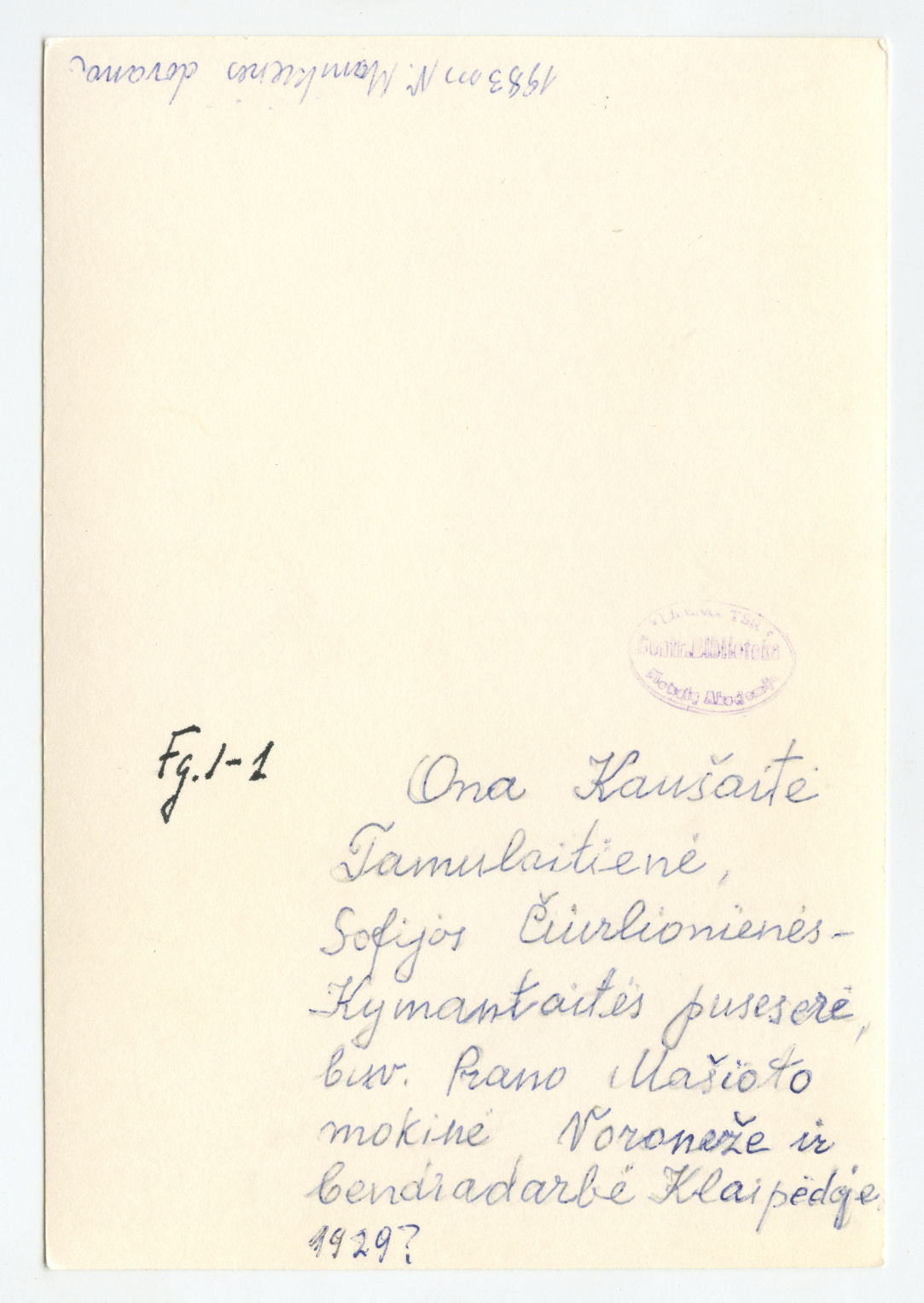 [Ona Kaušaitė-Tamulaitienė], [portretas]. [S.l.] : [s.n.], [192-?], 1 fotogr.