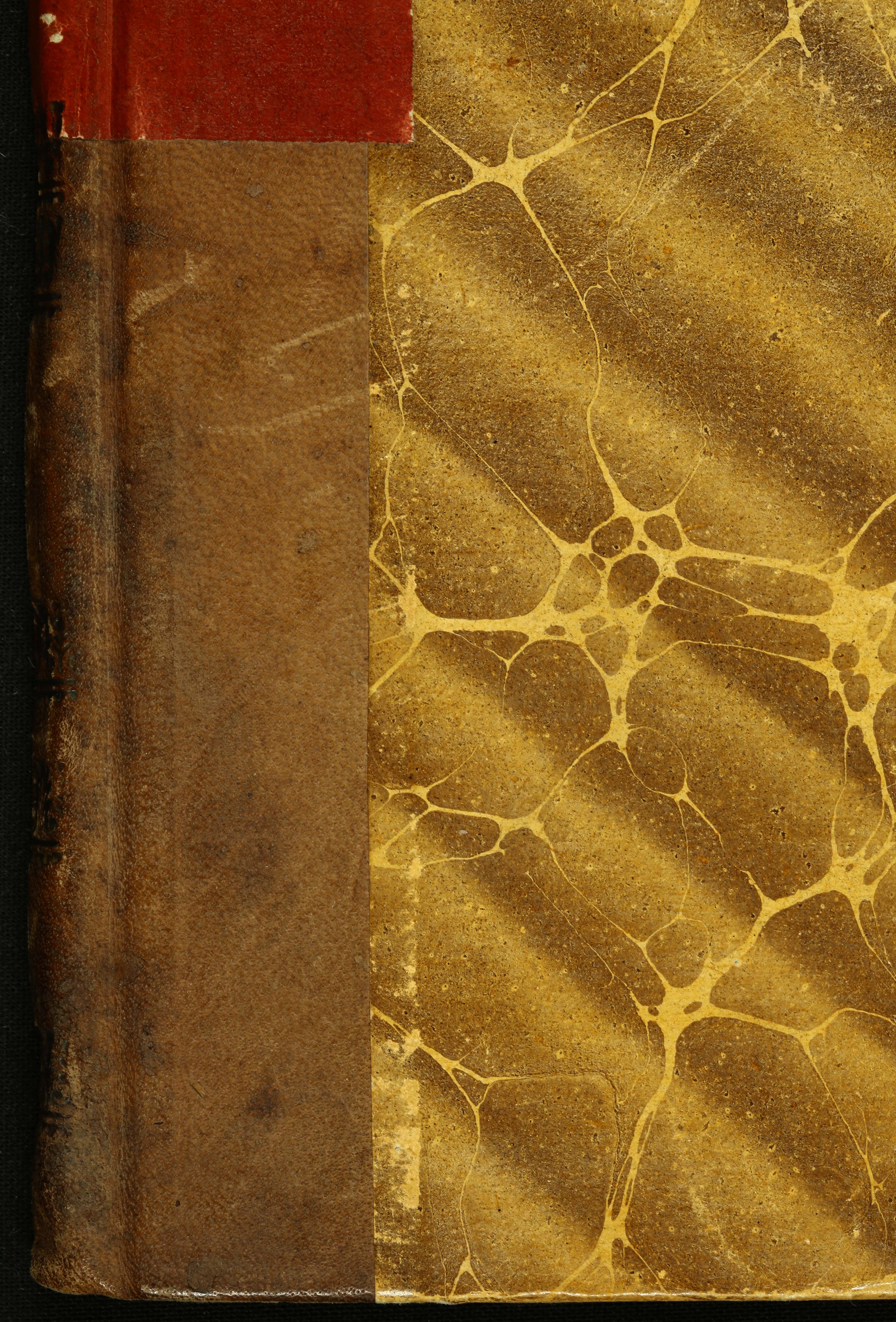 Įrišas: sudėtinis. Medžiagos: ožkenos oda, popierius. Viršelio oda –vienspalvė, dekoras – paauksintų įspaudų kompozicija. Viršelio viršutinės dalies viršuje (ir nugarėlėje) priklijuota prieklija su įspaustais antraštiniais duomenimis. Prieklija – vienspalvė. Viršelio popierinės dangos dekoro technika – marginimas plūduriuojančiais dažais.