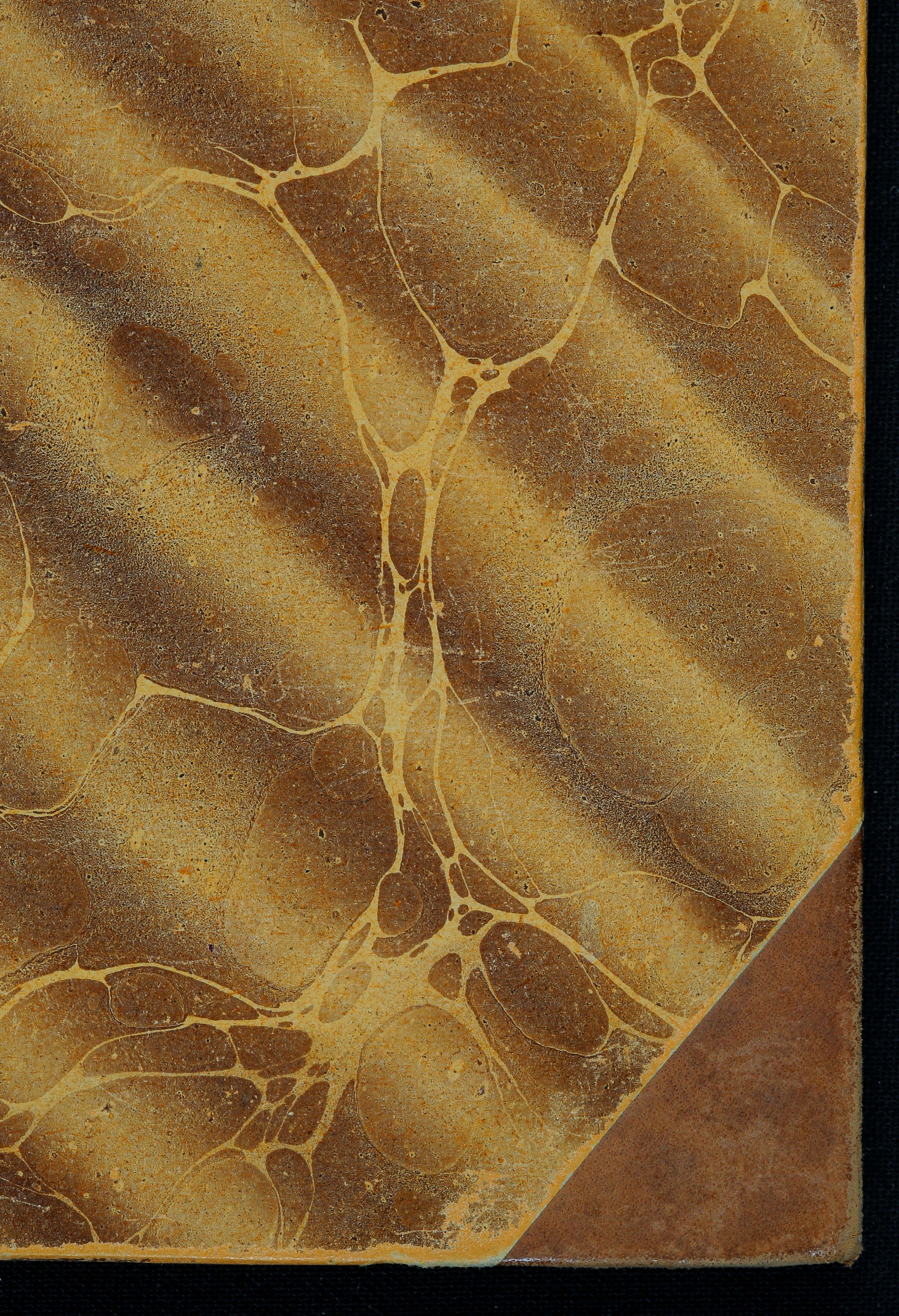 Įrišas: sudėtinis. Medžiagos: ožkenos oda, popierius.Viršelio oda – vienspalvė, dekoras – paauksintų įspaudų kompozicija. Viršelio viršutinės dalies viršuje (ir nugarėlėje) priklijuota prieklija su įspaustais antraštiniais duomenimis. Prieklija – vienspalvė. Viršelio popierinės dangos dekoro technika – marginimas plūduriuojančiais dažais.