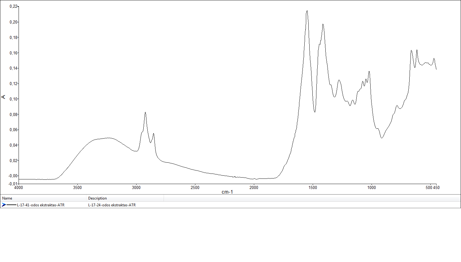 Mikrocheminiai ir instrumentiniai tyrimai: pH - 4,0; Geležies chlorido testas - teigiamas; Vanilino testas - teigiamas; Nitritinės rūgšties testas - neigiamas; Rodanino testas - neigiamas; Taninų klasė - Kondensuoti taninai; ATR-FTIR spektroskopija - Kondensuoti taninai.