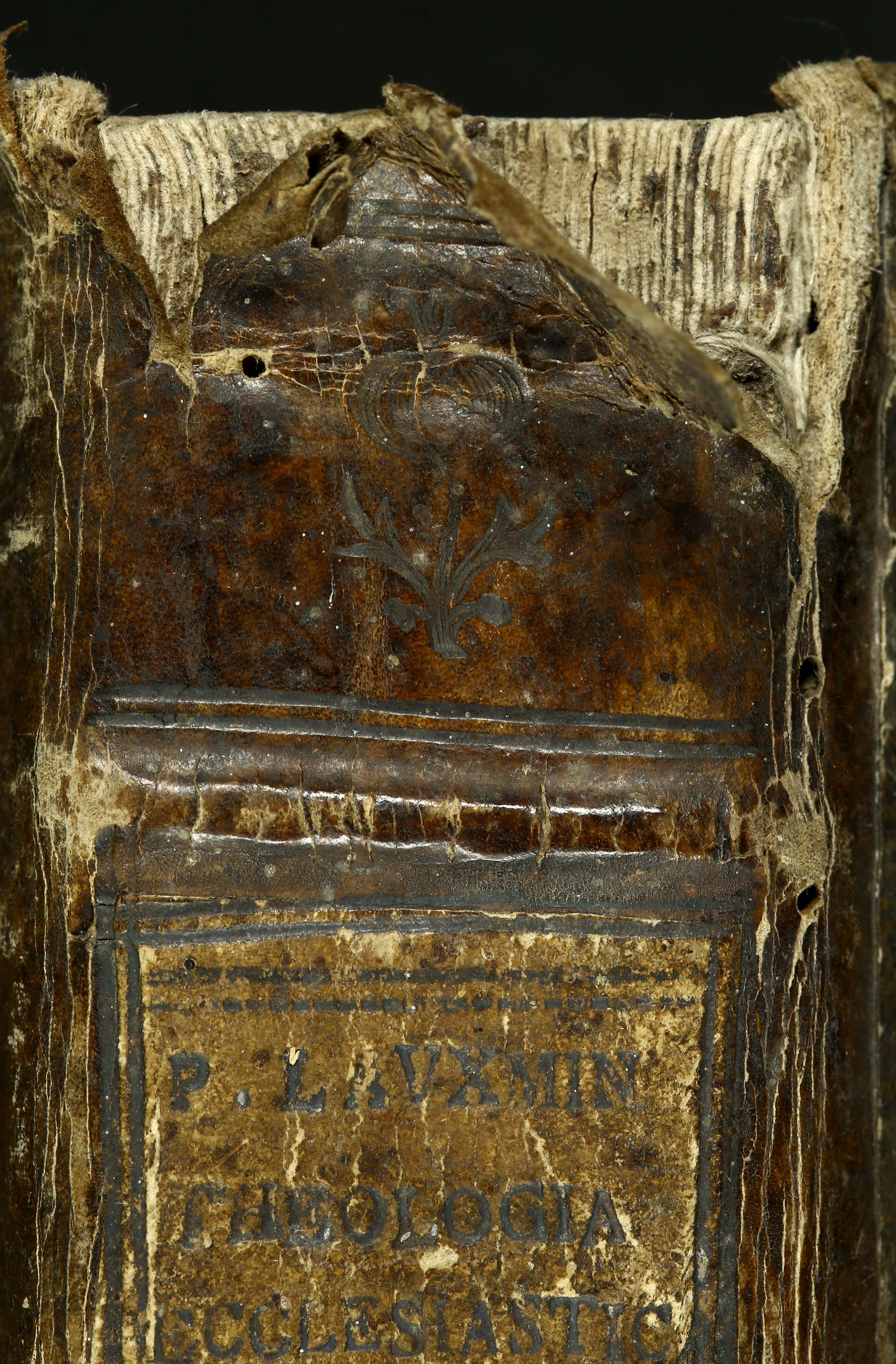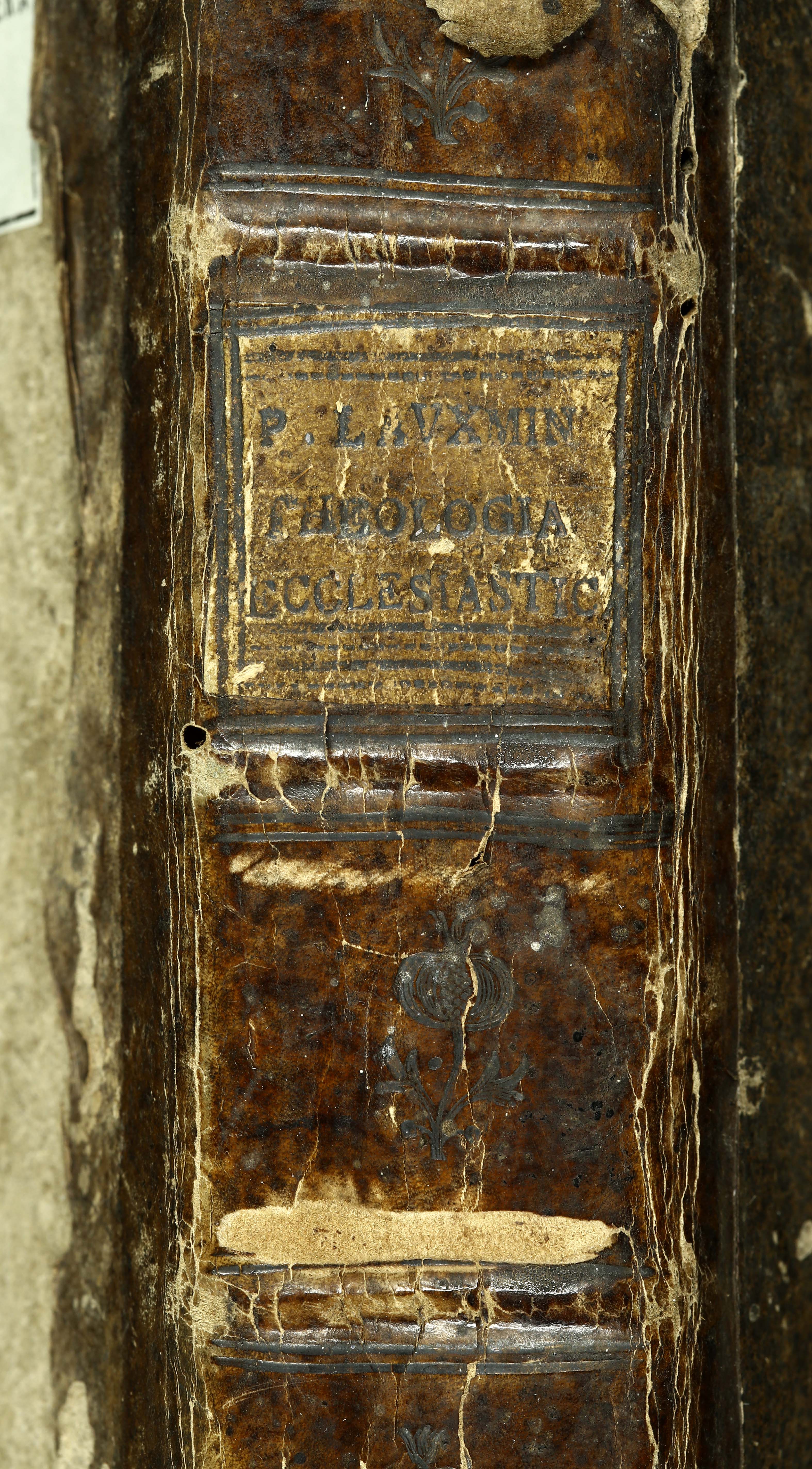 Įrišas knygos [Liauksminas, Žygimantas. Theologia ecclesiastica, in qua materiae omnes, quae in Ecclesia [...]. Vilnae : typis Academicis, 1675.]