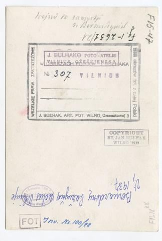 | dc.description | Nuotraukose: bendri Bernardinų bažnyčios vaizdai, bažnyčios fasadas ir jo fragmentai, bokštas, bažnyčios interjeras, vienuolių choras, šiaurinė bei pietinė navos ; Buvęs Bernardinų vienuolynas, vienuolyno pastatai ir kiemas ; Bernardinių vienuolyno kiemas, fasado fragmentai, interjeras ir kt. Apatiniame, dešiniajame fotografijos kampe įspaudas: J. Bułhak. Wilno. Kitoje fotogr. pusėje spaudai: J. Bułhak Art. Fotograf//Wilno, Orzeszkowej ; J. Bulhako Foto Atelje//Vilnius, Ožeškienės 3 ; Copyright by Jan Bułhak Wilno 1937 | lt |