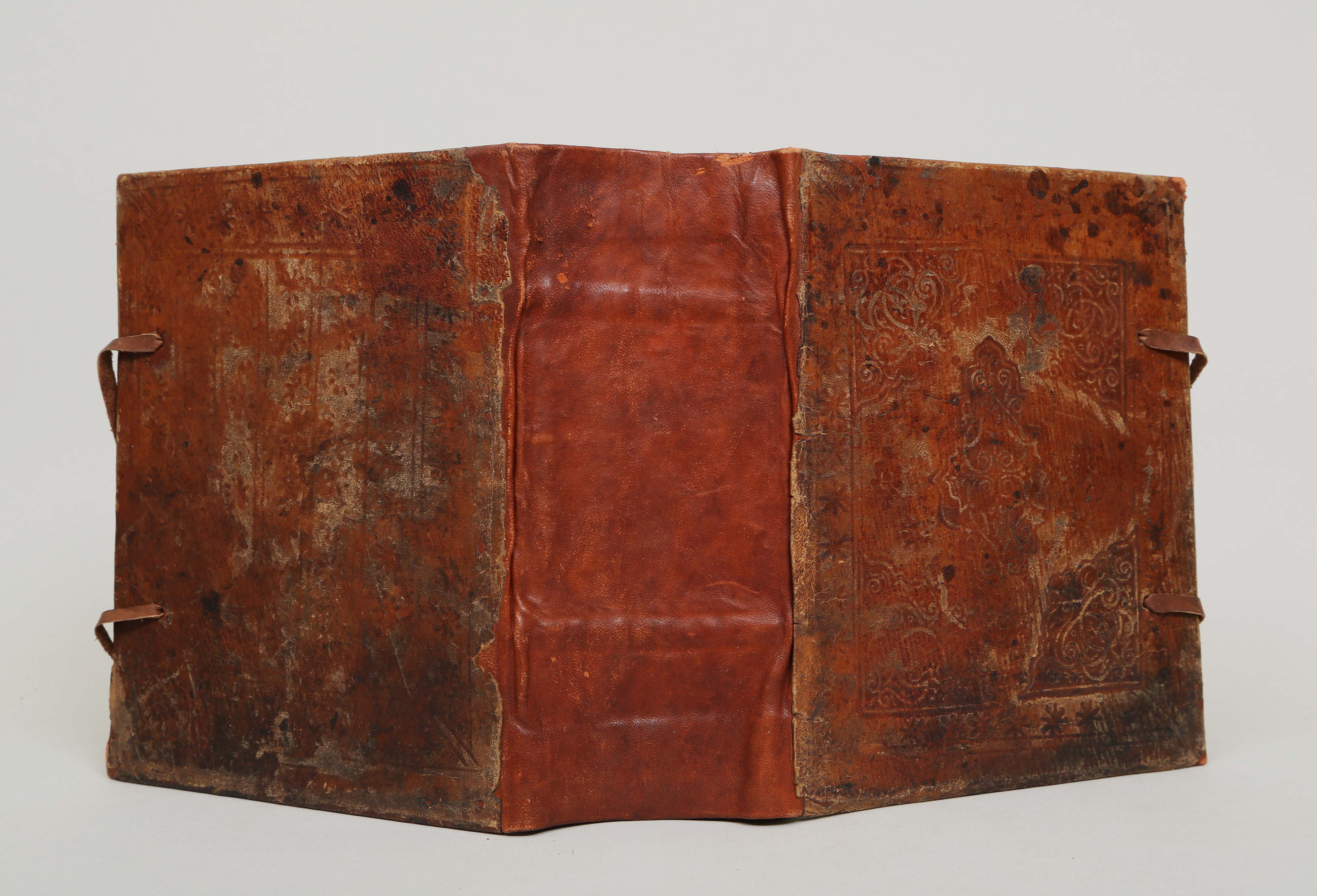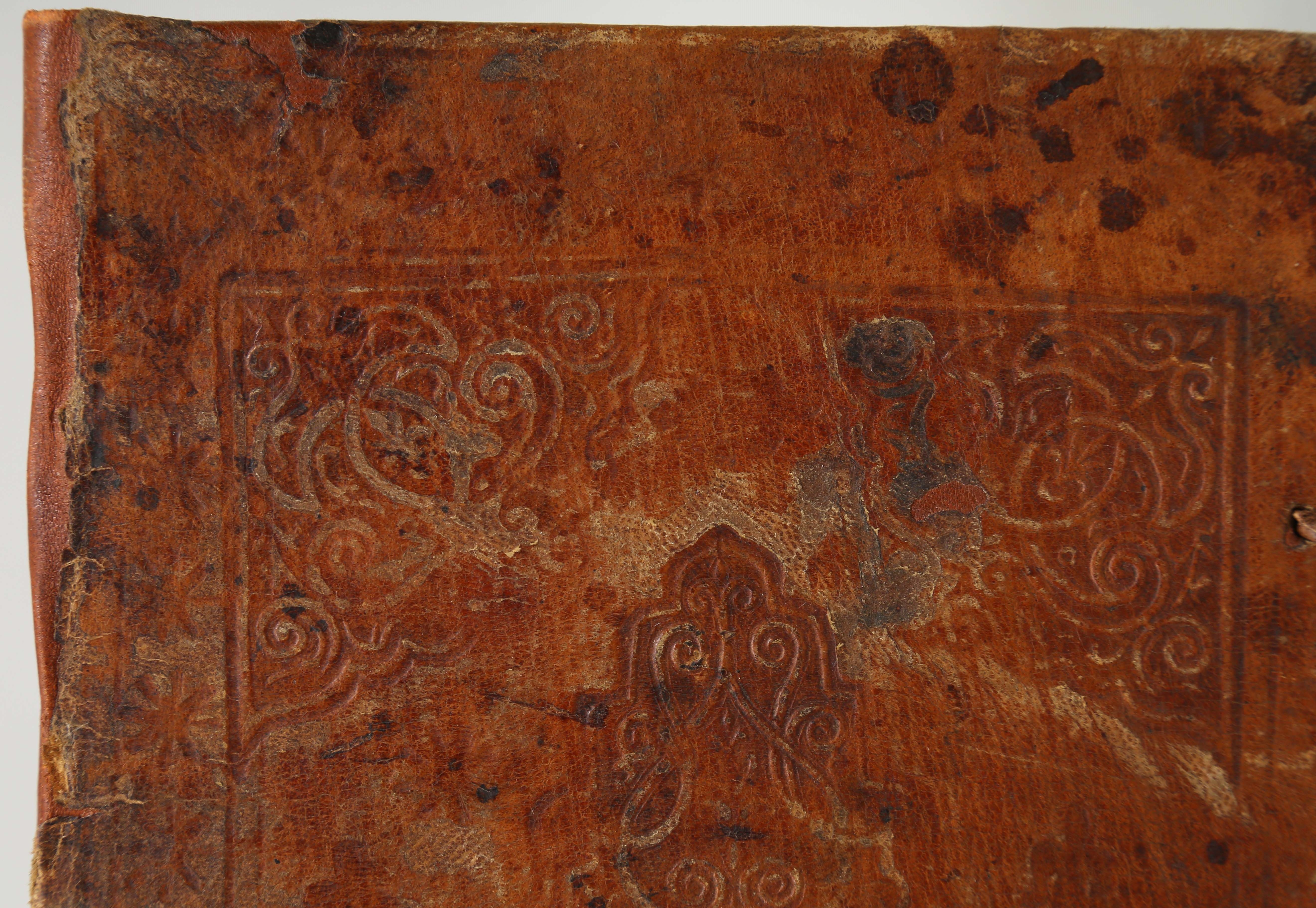 | dc.description.version | Binding: restored, full binding; materials: goatskin. Leather decoration technique on the cover: monochromatic dyeing. Tooling: a design made by various tools inside a double fillet perimeter frame. The front and the back covers are different. | |