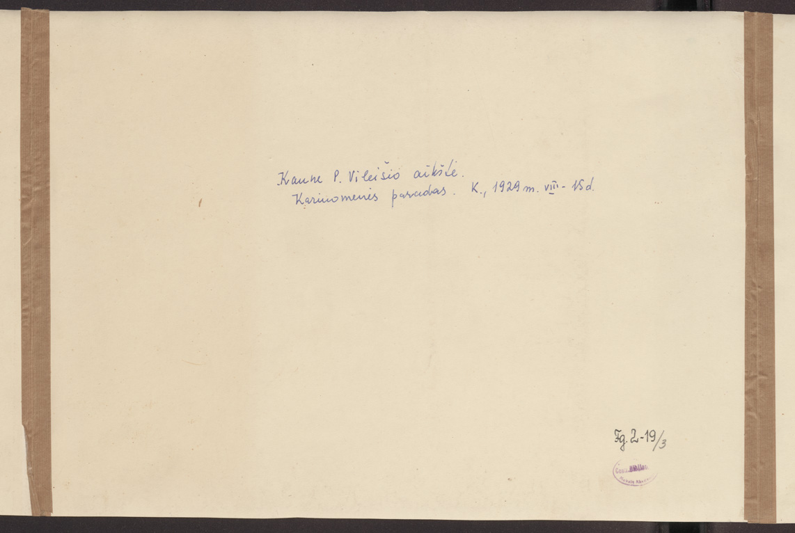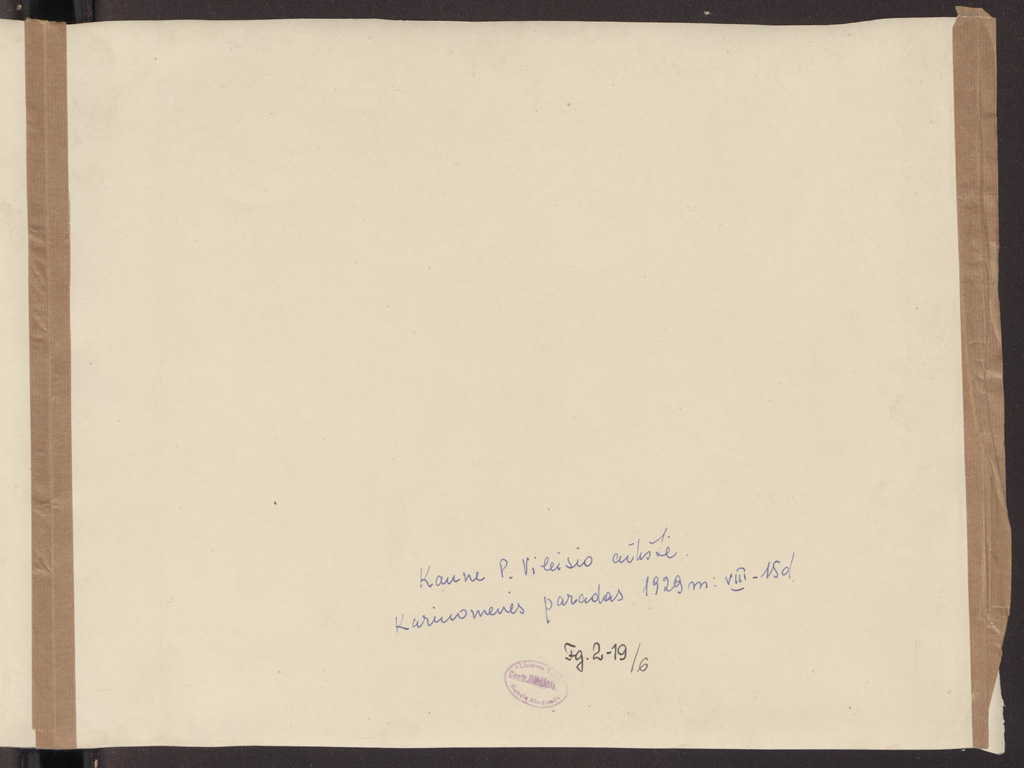 Tautos šventės iškilmės : Lietuvos kariuomenės paradas Kaune 1929 metais rugpjūčio 15 d. Petro Vileišio aikštėje : [panoraminės fotografijos] / Alf. Žibos foto, [Kaunas] : [Alf. Žibas], 1929, 8 fotografijos : nespalvotos ; 25 x 30.8 ; 26.6 x 38 cm.
