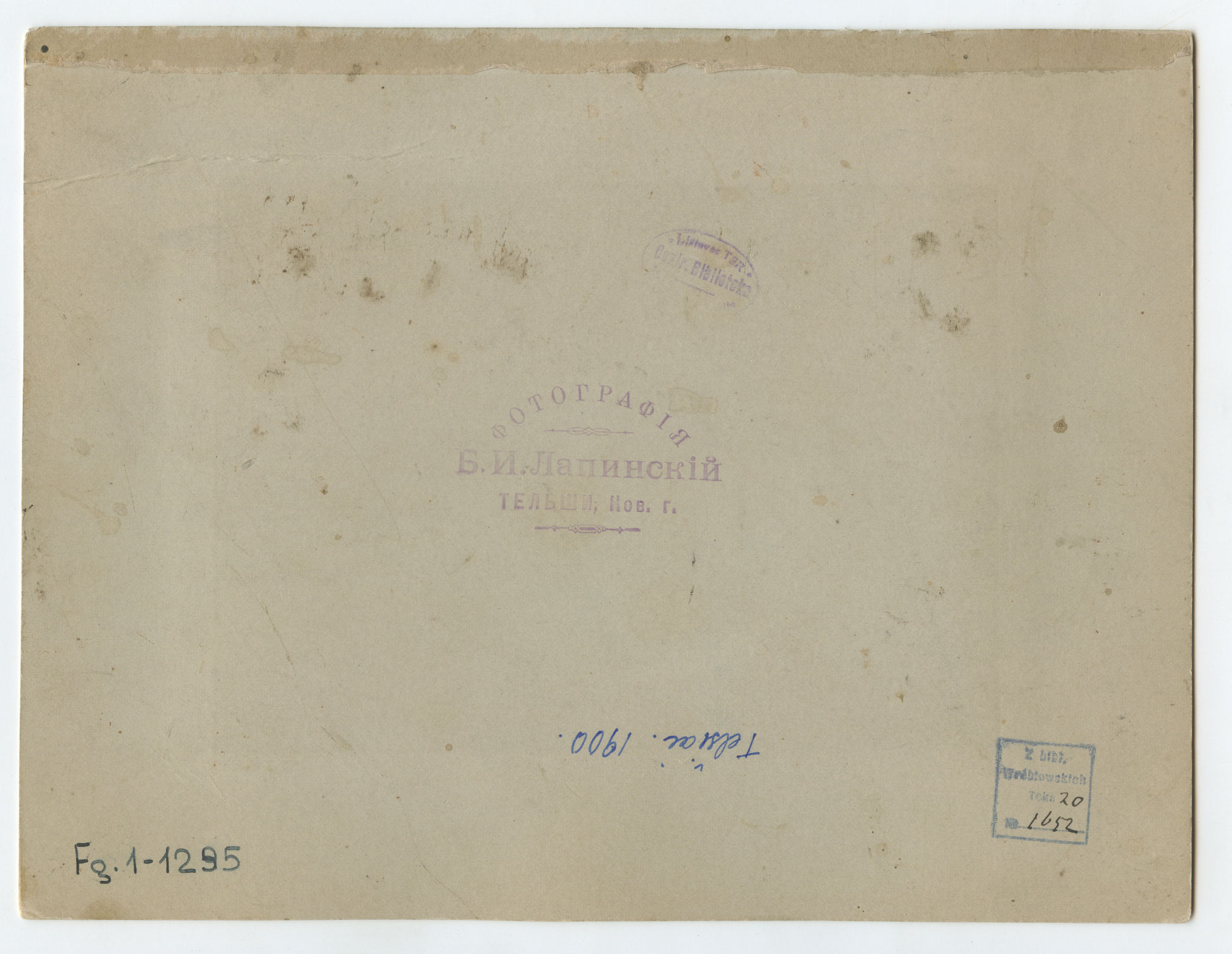 | dc.description | Kitoje fotografijos pusėje spaudas: Фотографiя//Б. И. Лапинскiй//Тельши, Ков. г. | lt |