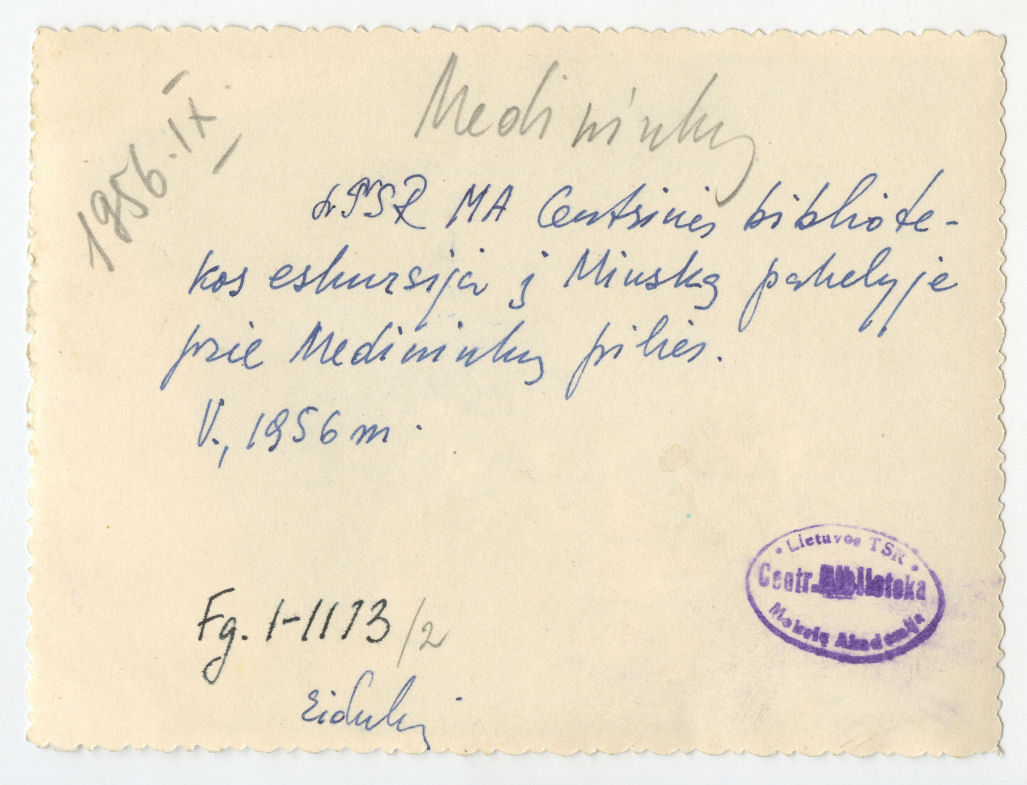 [Lietuvos TSR mokslų akademijos Centrinės bibliotekos darbuotojų grupė prie Medininkų pilies griuvėsių]. [Vilnius] : [s.n.], [1956], 2 fotogr.