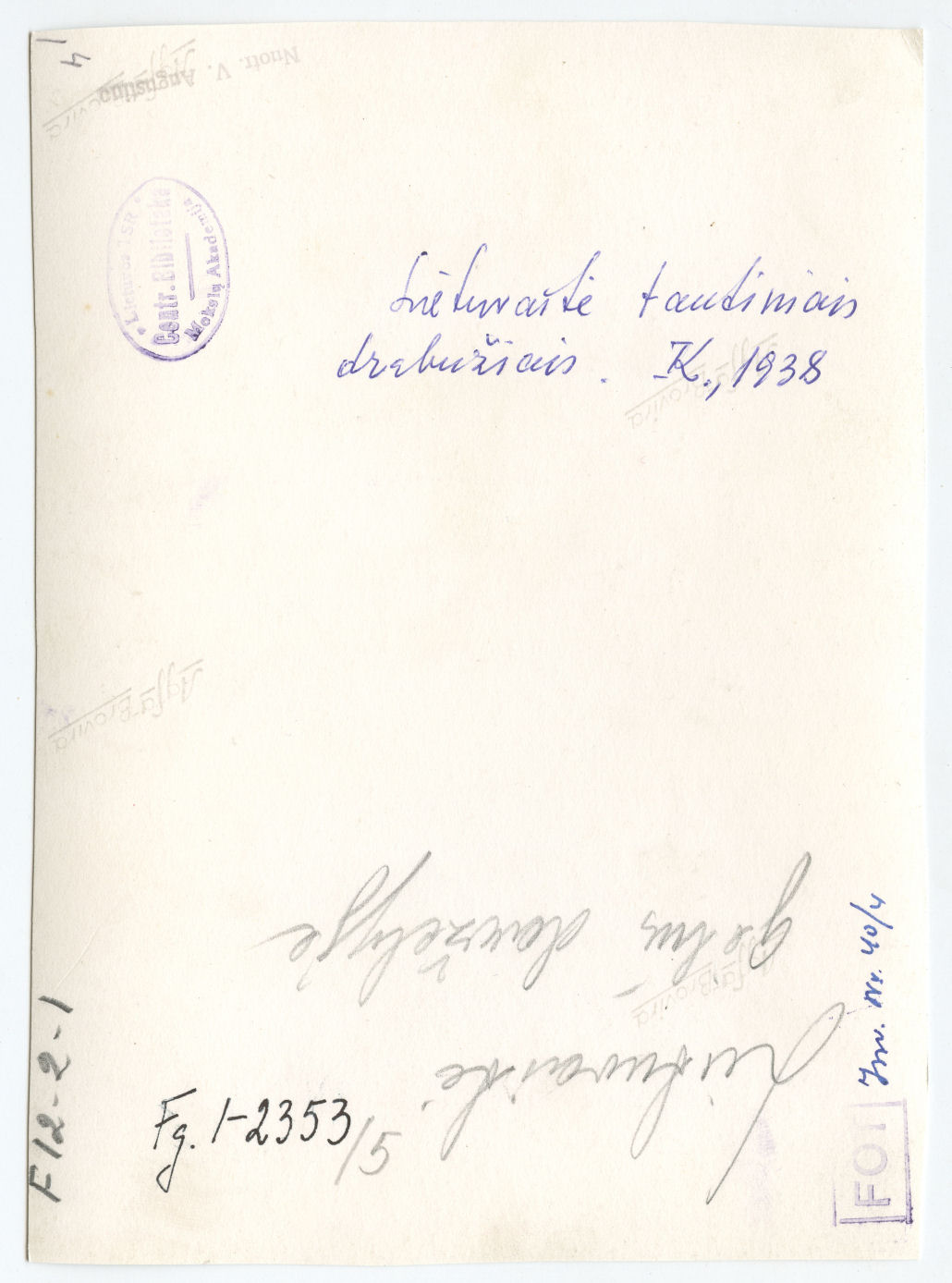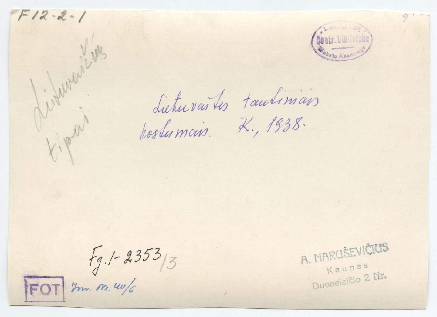 [Lietuvaitės tautiniais rūbais], [nuotr. A. Naruševičiaus, V. Augustino]. [Kaunas] : [A. Naruševičius, V. Augustinas], [1930-1944], 5 fotogr.