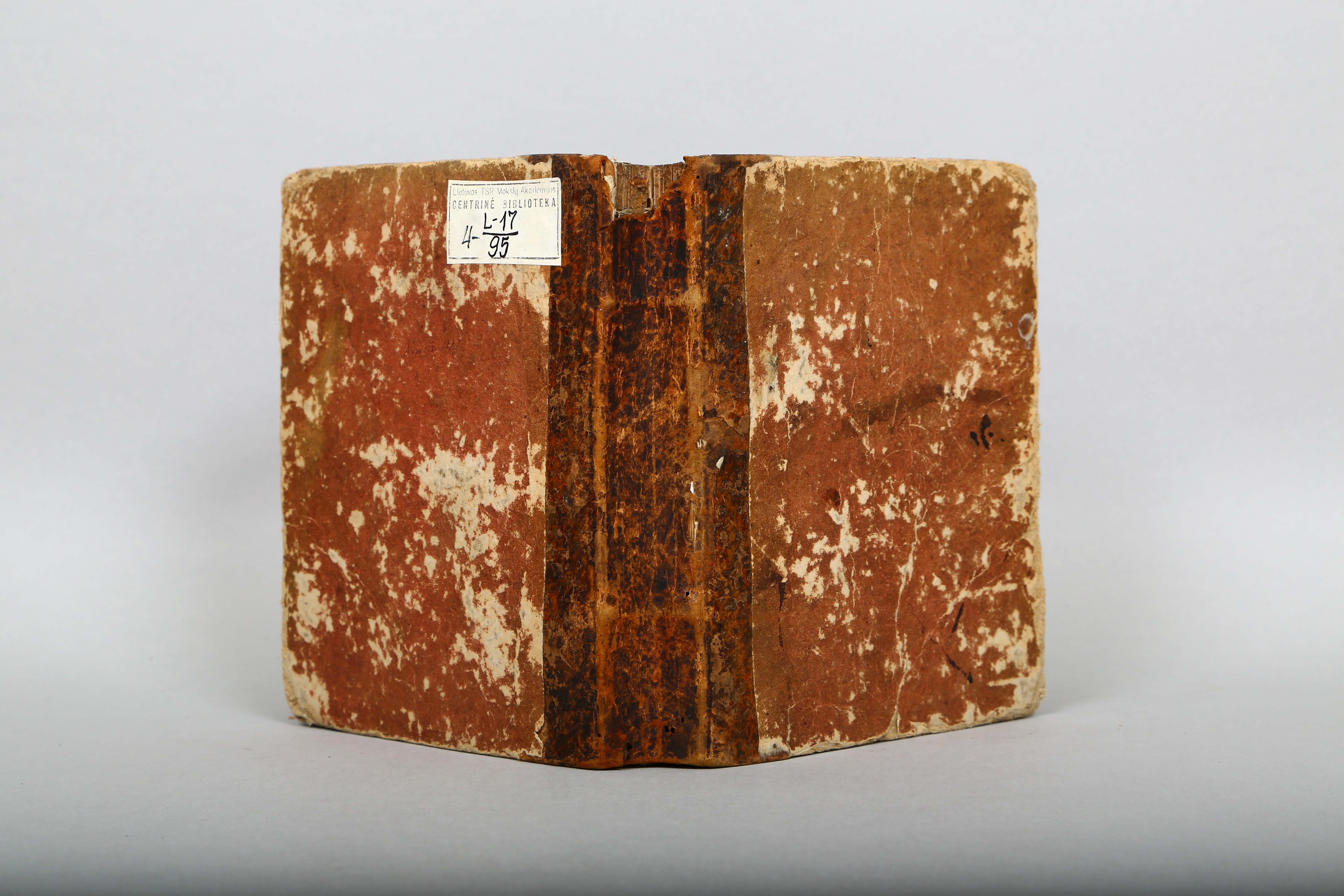 | dc.description | Įrišas: sudėtinis. Medžiagos: jautenos oda, popierius. Viršelio odinės dangos dekoro technika – marginimas taškymo metodu. Viršelio popierius – vienspalvis. | - |