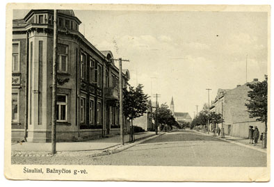 Šiauliai : Bažnyčios g-vė, Šiauliai : Mauša Ordmanas, 1930, 1 atvirukas : tonuotas ; 9.2 x 13.8 cm.