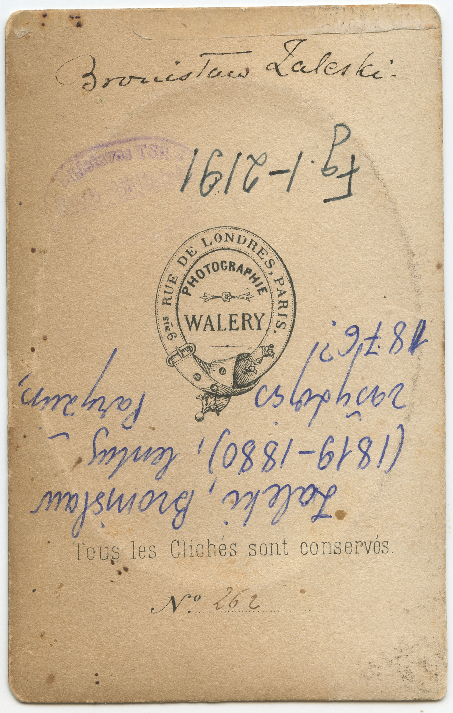 Bronisław Zaleski : [portretas] / Walery, Paris : Walery, [18--?], 1 fotografija : ovali, nespalvota ; 7.3 x 5.3 ; 9.9 x 6.2 cm.