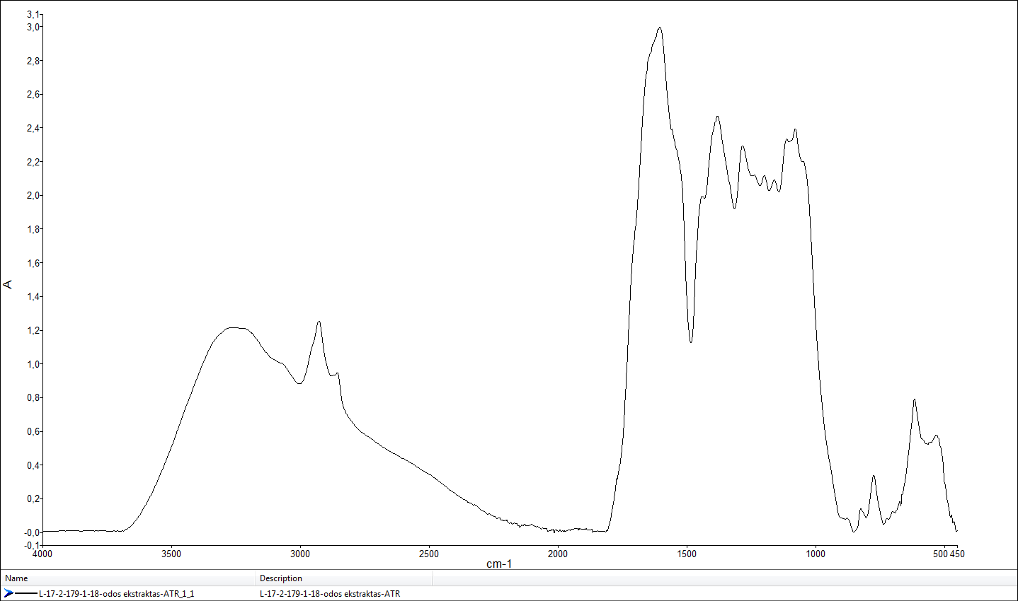 Mikrocheminiai ir instrumentiniai tyrimai: pH - 5,3; Geležies chlorido testas – teigiamas; Vanilino testas – teigiamas; Nitritinės rūgšties testas – teigiamas; Rodanino testas – neigiamas; Taninų klasė – hidrolizuojami ir kondensuoti taninai; ATR-FTIR spektroskopija – Elago ir kondensuoti taninai.