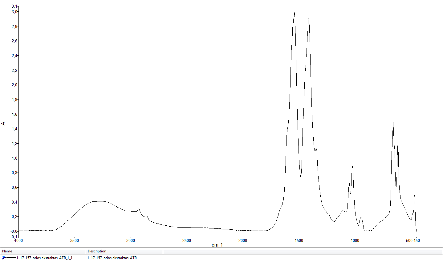 Mikrocheminiai ir instrumentiniai tyrimai: pH - 6,0; Geležies chlorido testas - teigiamas; Vanilino testas - teigiamas; Nitritinės rūgšties testas - neigiamas; Rodanino testas - neigiamas; Taninų klasė - Kondensuoti taninai; ATR-FTIR spektroskopija - Kondensuoti taninai.